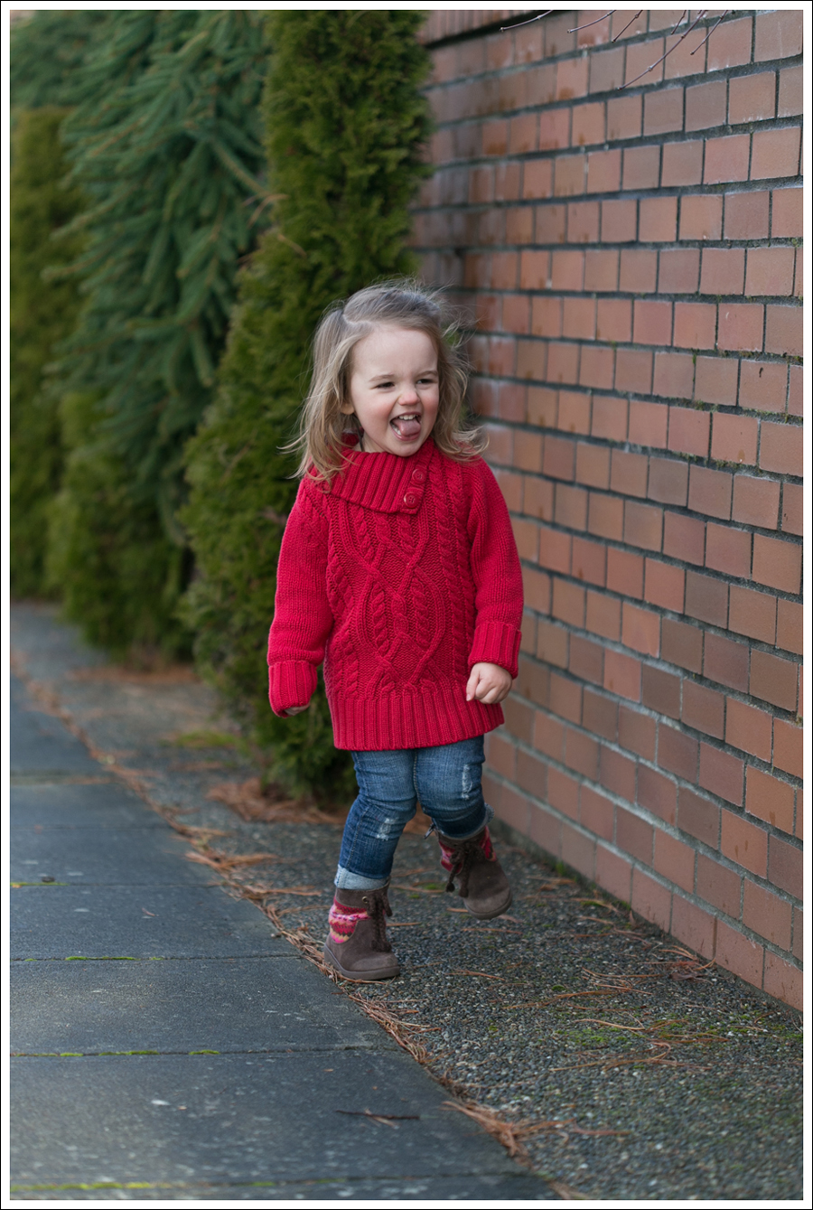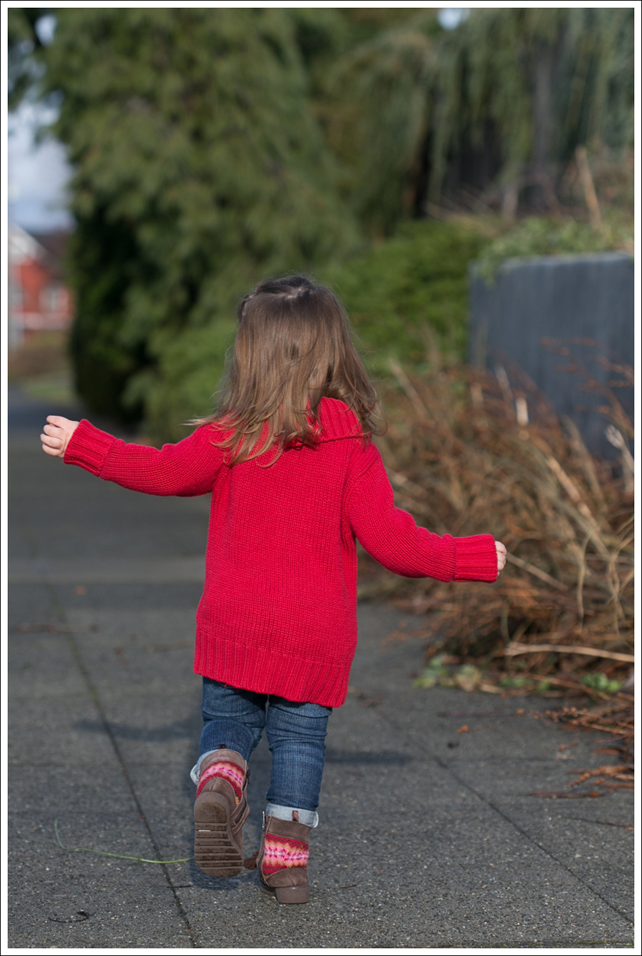 Supermom Tip-Don’t be afraid to buy up a few sizes on sweaters if you get a good deal.  This sweater was $1, but a 4T.  It became a tunic-win!
