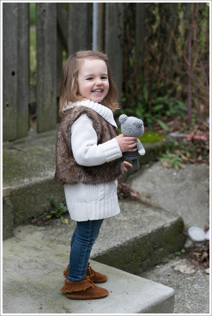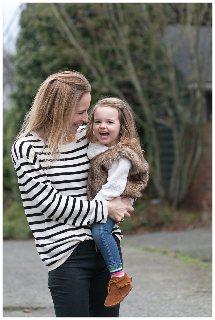I’m pretty sure it’s obvious, but I am so obsessed with stripes!  The “don’t wear horizontal stripes” is for sure a rule to break.  Everyone can!  Little hints of it peeking out of layering…LOVE!!!  I’m also a bit obsessed with the faux fur trend, but have only really had the nerve to try it out on Maya (my little fashion guinea pig :})Blog HM Sweater Genetic Denim Shane Coated-1 Blog HM Sweater Genetic Denim Shane Coated-2See the below expression?  That would be me awkwardly trying to talk to a neighbor that came out while the self timer was going off.  Hey, I have a limited window of Maya snacking in the wagon.  I’ve got to keep this moving! 🙂  He eventually went back inside… Blog HM Sweater Genetic Denim Shane Coated-3 Blog HM Sweater Genetic Denim Shane Coated-4 Blog HM Sweater Genetic Denim Shane Coated-5And THIS is why I am so thankful I’m doing this blog.  Are you kidding me with that smile?  LOVE HER!  In her hand is a doll from LinaMarieDolls.  They are SO CUTE (sorry, I didn’t get a better picture of the doll, but getting Maya to “show me the doll” wasn’t exactly working.  I won it in a cut throat auction, and have never been so glad to spend more than retail price on anything! 🙂  It’s all for a good cause, right?  She has SO many other cute creations!!  I foresee our house being overrun by them… 🙂 Blog HM Sweater Genetic Denim Shane Coated-6I see so many other bloggers talking about “reality” vs “blogging reality”.  I admit.  I’m only posting pictures that look good.  Where me and Maya look happy.  Duh.  Honestly, I’m so lucky.  Maya really is a happy kid, but I HAD to put these in here.  These are SO going to be my teenage years… Blog HM Sweater Genetic Denim Shane Coated-7This is such a blogger pose below… And remember this sweater in red?  YES, I found it in another thrift store in cream.  Same “too big” size!  This one was $1.50.  SCORE!! Blog HM Sweater Genetic Denim Shane Coated-8Now, back to reality.  “I’m jumping!!” Blog HM Sweater Genetic Denim Shane Coated-9Lastly.  Wow, I’m rambling a LOT in this post.  I’m not sure if any of you care about coats, but I’m thinking with the crazy weather in the US, the answer is yes?!  I LOVE vintage coats.  They are a fraction of the cost, look totally current (most designers base their looks on vintage coats), and nobody else will have them (WIN!!).  All around SCORE as far as I’m concerned!!  I haven’t really blogged much about outerwear, but I thought I might at the end for those that care.  Pretty sure I got this coat for less than $20.  It’s been a while… Blog HM Sweater Genetic Denim Shane Coated-10 Blog HM Sweater Genetic Denim Shane Coated-11On me…