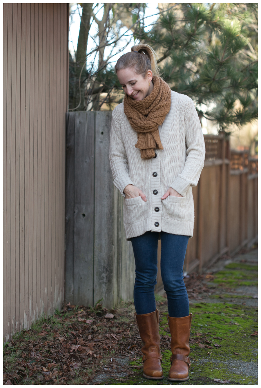 I bet you’re thinking…”I think I’ve seen that outfit recently…?” Ok, yes. It’s the oatmeal version of the Zara Boyfriend sweater that I wore last week. I LOVE IT! Am I the only one that buys things in multiple colors when you find something you love? Especially if it’s on sale?! Anyway. So comfy, and I love the elbow patches.