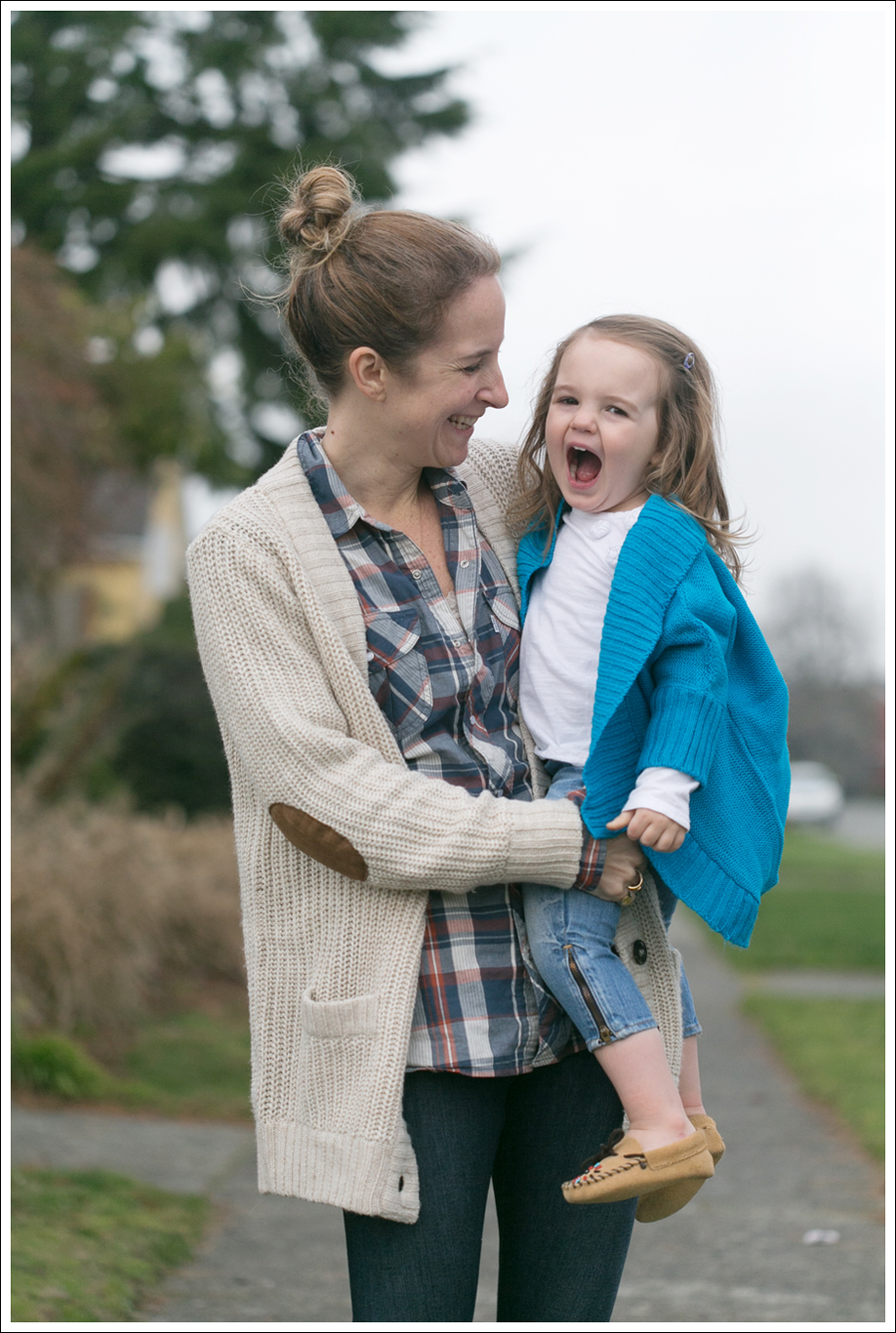 I was so proud that we were in no way matching today, and then it hit me. Hmmm, we kind of still are. Both wearing comfy sweaters and zipper jeans! Ugh. Oh, well. We don’t care 🙂