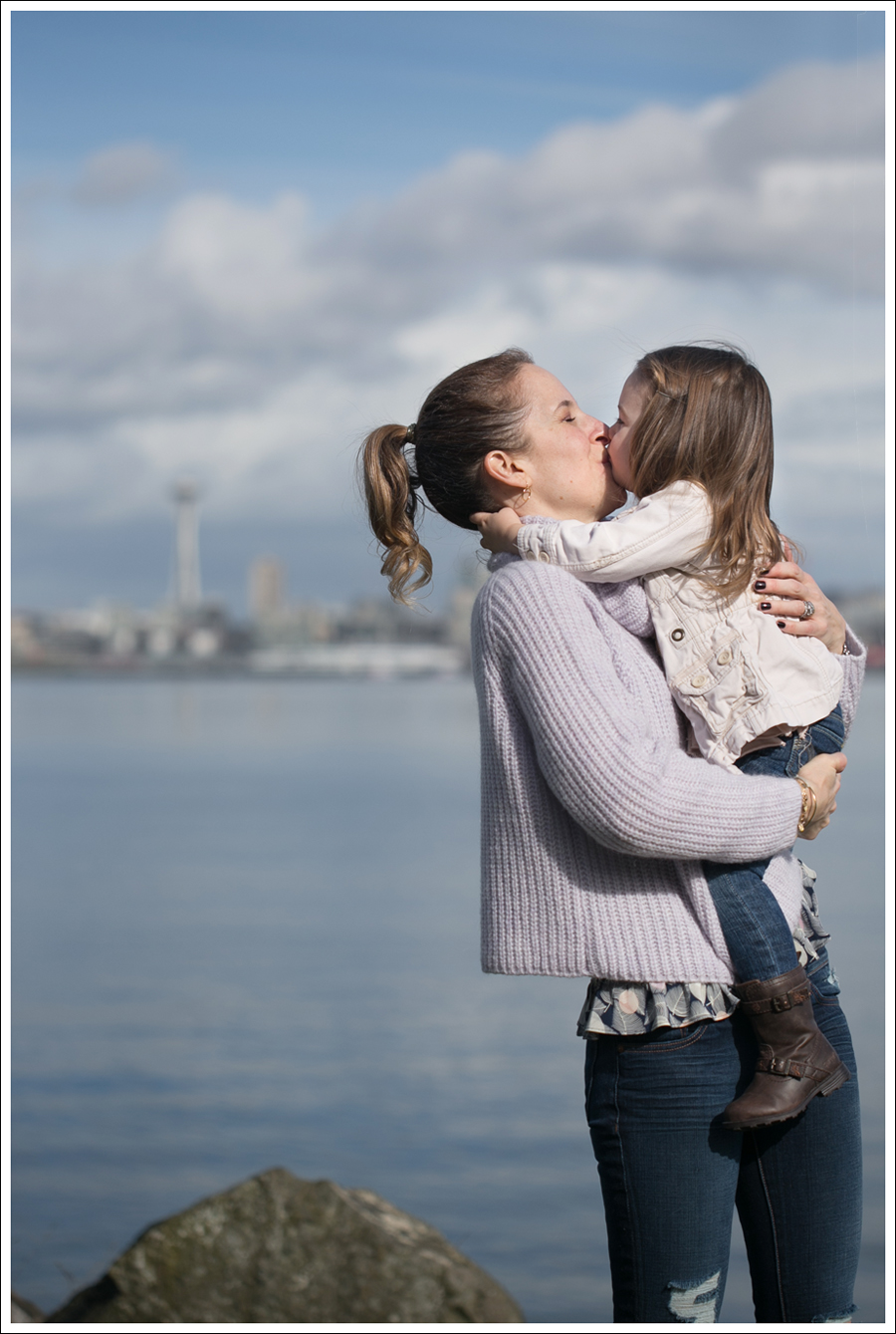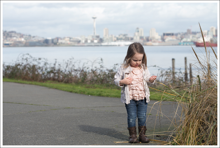 It’s so funny how if you give us a little sun and 50 degree weather, we are all happy as clams here in Seattle! I’ve been dying to shoot down by the water with the Space Needle in the background for a while. We walk by this spot almost every morning on our walk. It’s SO pretty…