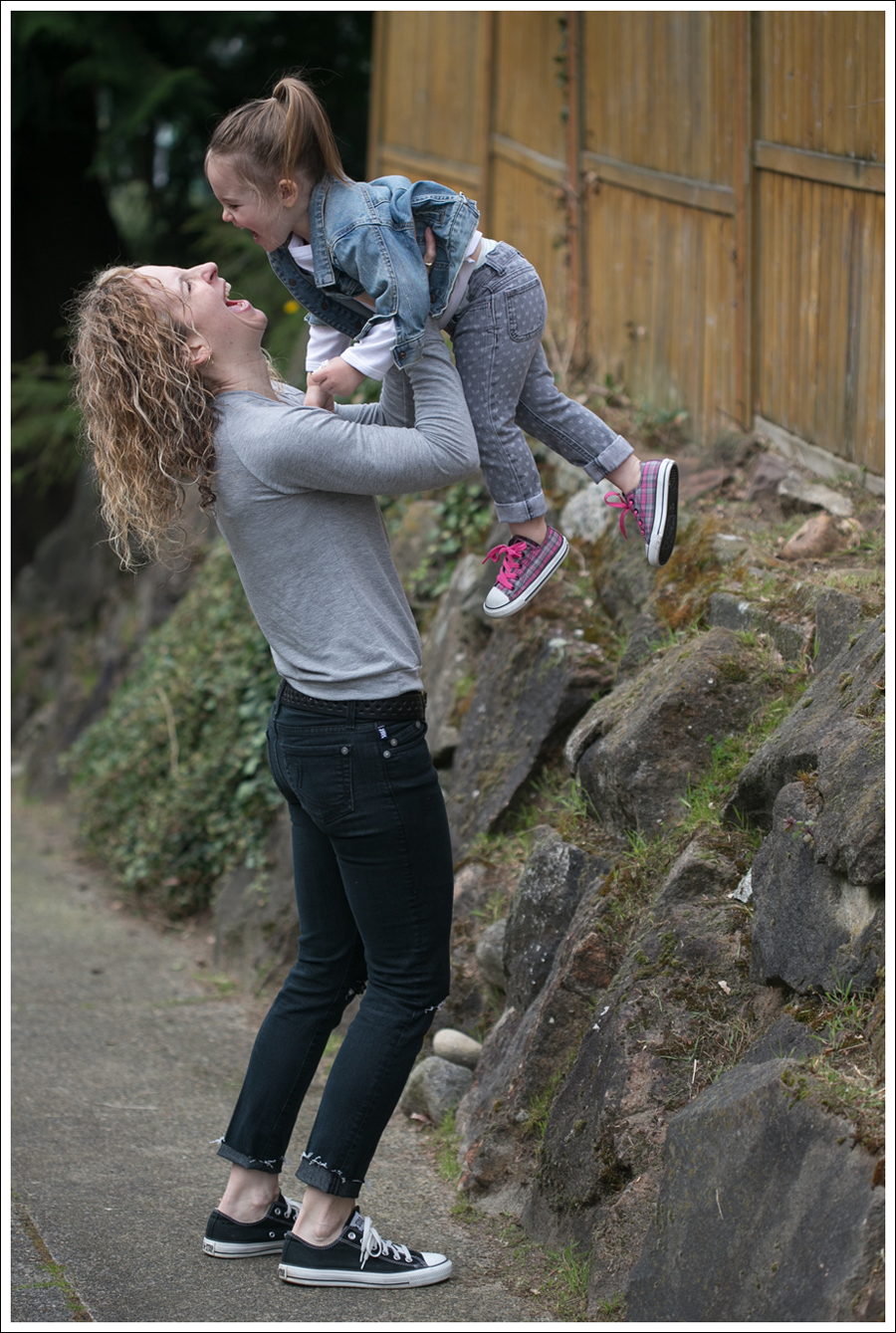 Maya loves to jump off anything!! The only problem is that she just jumps assuming you’re are going to catch her. I’m pretty prepared, but the other day she totally belly flopped about 3 steps up because her brother had no idea she was going to attempt to jump into his arms :{ We are working on saying “I’m jumping! Catch me!” She’s starting to say it mid jump now. Baby steps…