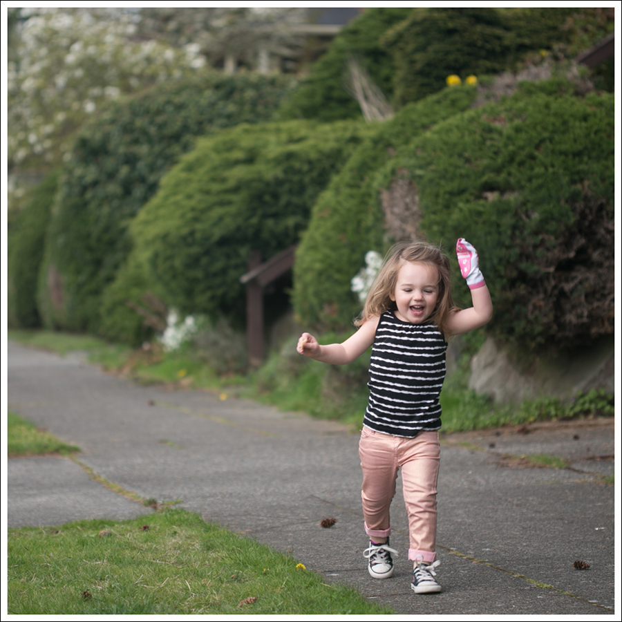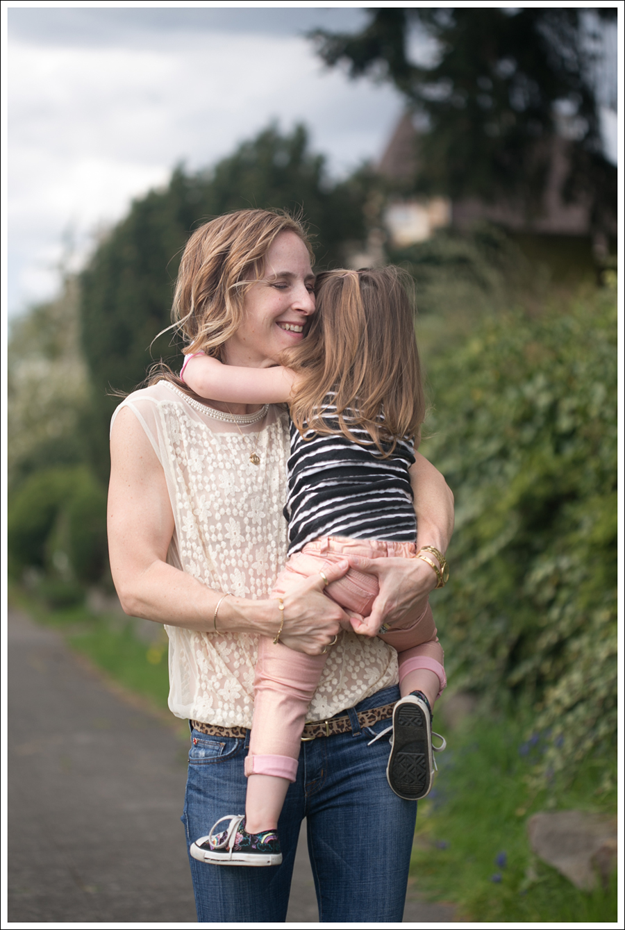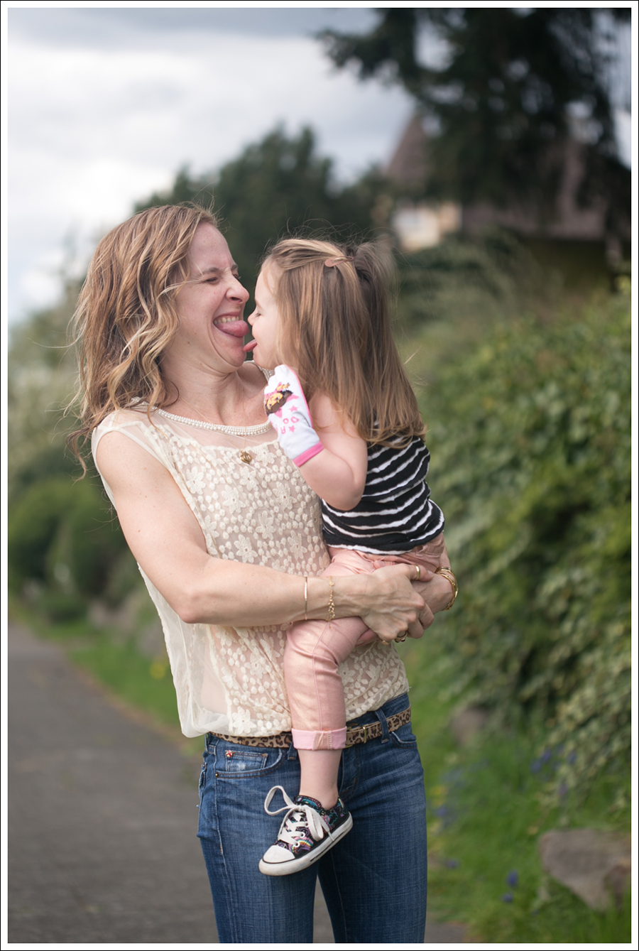Yes, she has a sock on her hand. Thank you Sandra Boynton “Blue Hat, Green Hat”… And, yes, she wants to touch tongues. Mother’s love, right there!
