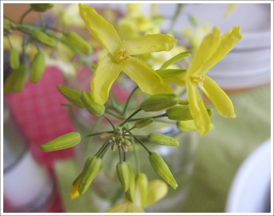 - Edible flowers like Kale flowers (shown) or mint for garnish