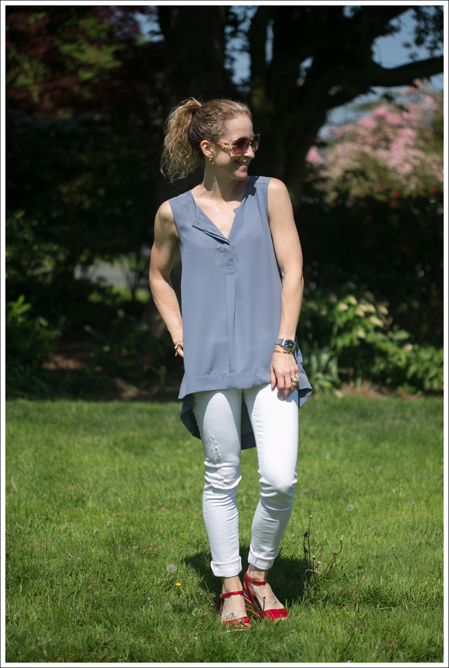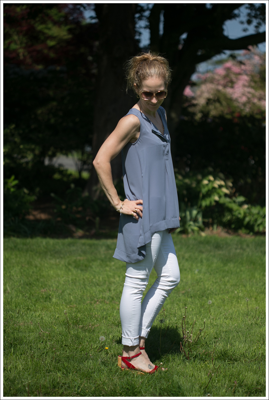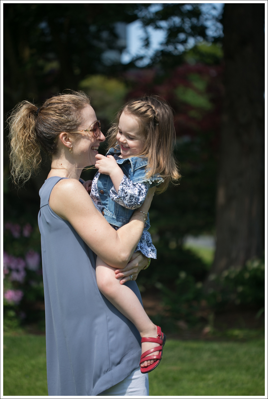 Side note for momma’s (or really for anyone!) These shirts from H&M are awesome in that they don’t wrinkle! I hugged and carried Maya around and you’d never know… WIN!!! I love silk tops, but not so practical for toddler days :{