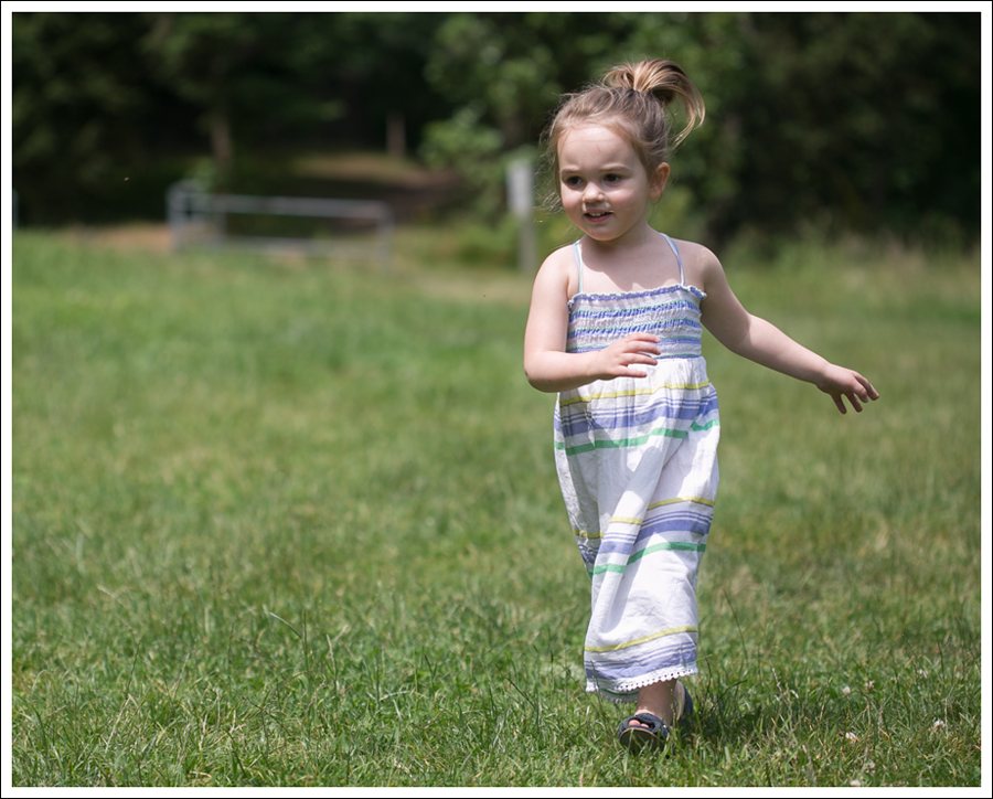 So, there was a fire pit in the middle of all the wooden benches (what we are standing on.) Maya decided to sit and play in it. Of course, the more I tried to coax/carry her out of it, the more determined she was to sit and then roll around in it! Coal remnants and all… She was a filthy mess, as was I afterwards, but again…one of the many reasons I love thrifting! And…why I love Oxyclean haha. And then she saw the mole hills and was off to play in those 😉