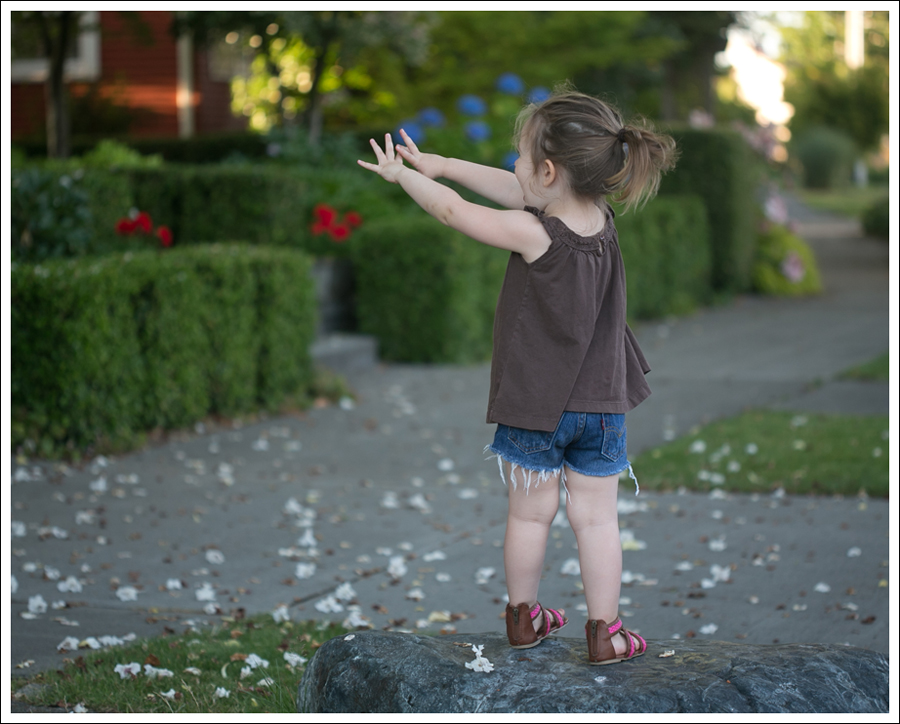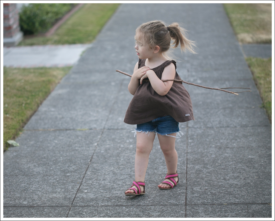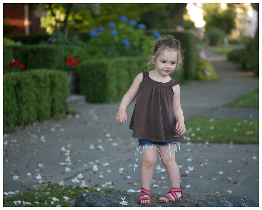 While I like to experiment, and have fun trying new things to wear…chances are, most days I’m wearing a swing tank and cut offs. Now that I’ve gone scissor crazy on a few pairs for Maya, she will too! Of course on the days I can talk her out of wearing a “Princess Dress” aka…all dresses 🙂