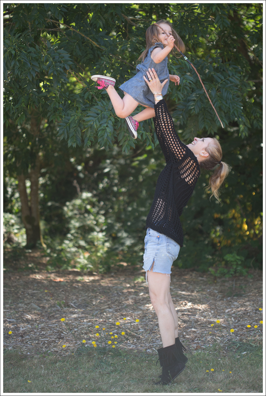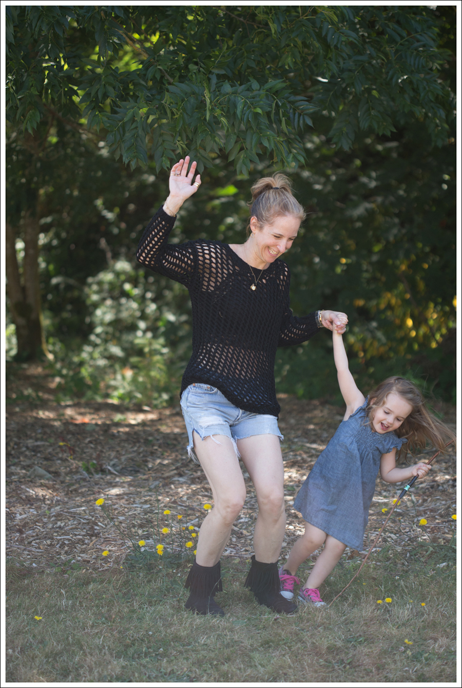 I scored this sweater for $10 from Twice a few weeks ago!! It’s been SO hot lately though (I mean upper 80’s/90’s is HOT for Seattle), so I haven’t been able to wear it. Finally we had a slight break in our heat, so I threw it on. It’s the perfect amount of warmth, but air conditioned :). I’m not really sure how age appropriate a see through sweater is, but I took these when I was still in my 30’s (albeit the very last day), so maybe it’s ok haha :}
