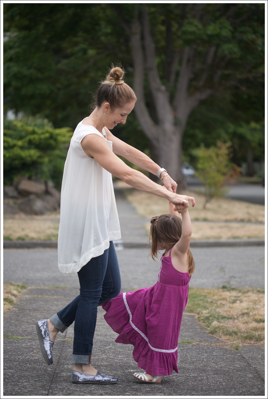 I actually found myself ahead of schedule the other day. I had a shoot during the week, and I found myself with 15 extra minutes before I was taking Maya to a drop in daycare. So…we went outside and danced a little…