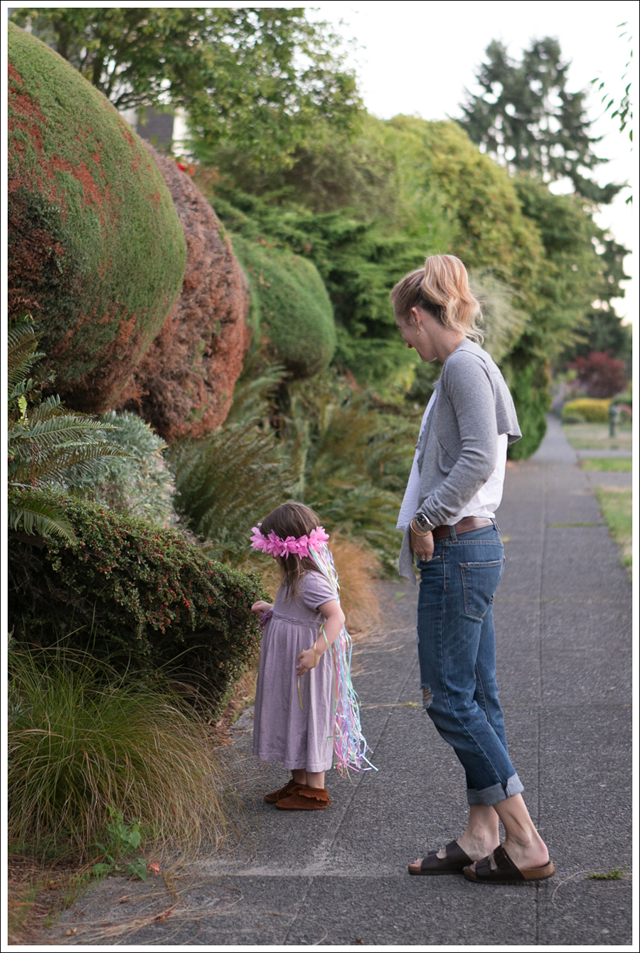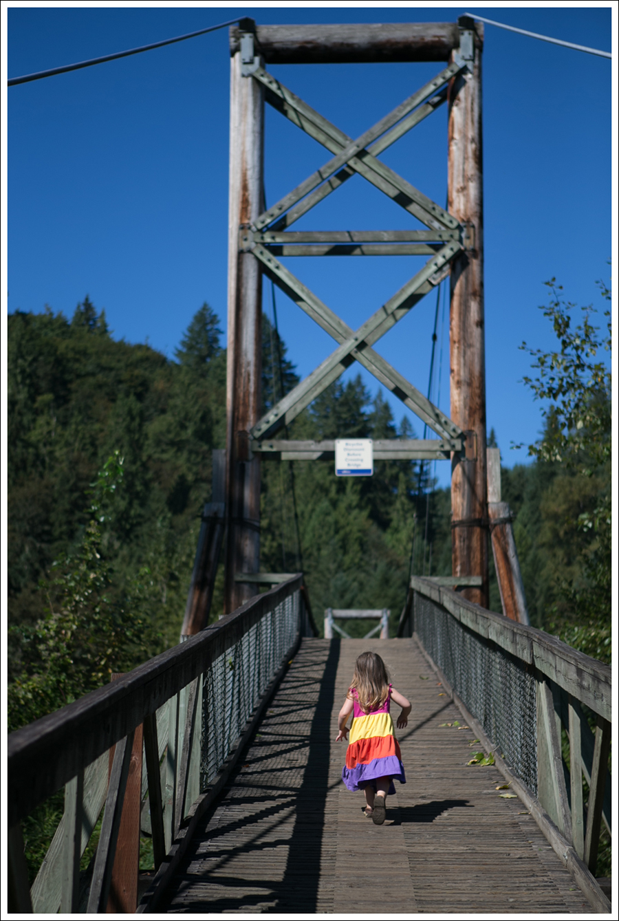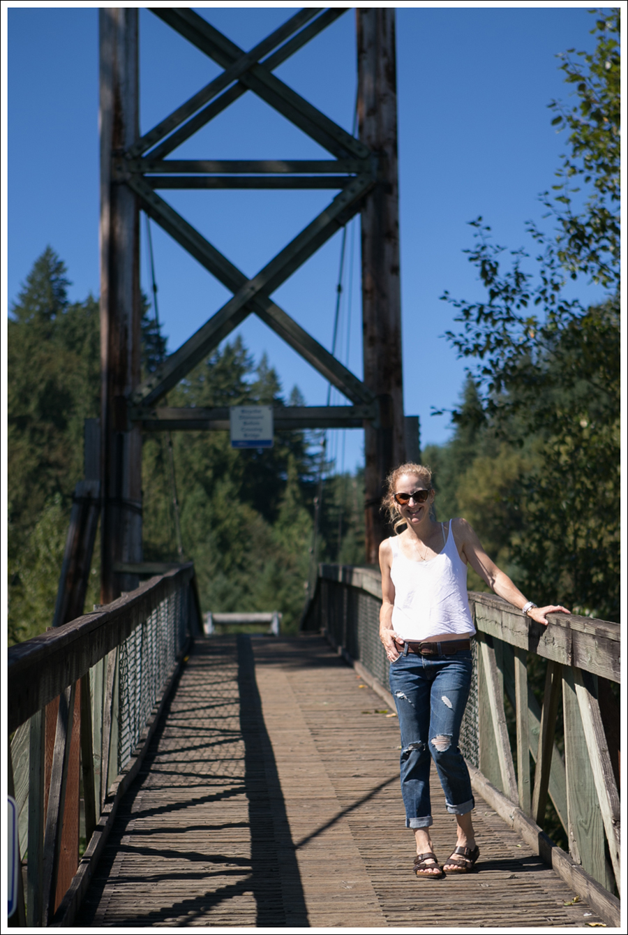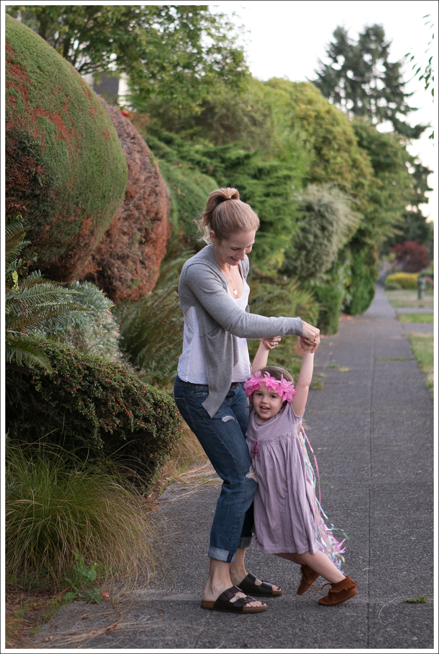 At least that’s what I tell myself.  And since I’ll never know what would have happened, I’m right, no? 🙂  We had planned to meet some friends at Remlinger Farms last week.  It’s a “farm” that’s about an hour away, that has rides, animals you can pet, a train ride, and overall just sensory overload fun for your toddler.  Well…come to find out they are closed during the week in September.  They hadn’t updated their website, so they were kind enough to give both my friend and me 4 passes to come back (score!).  But…we then had two little girls that were all amped up for an adventure… :{  SO…we went to the closest “park”, Tolt MacDonald Park.  Turns out it’s a campground with a super cool suspension bridge!  I kind of want to go back and go camping here.  I say this as a non camper.  They have yerts that you can rent.  For those of you not familiar with what a yert is (I had no idea!).  It’s a “tent/cabin”.  No amenities, but these had flooring and bunkbeds.  That is my kind of camping 🙂Blog Tolts Macdonald Park-1I thought Maya might be scared of the bridge.  It actually swayed when you were in the middle!  But…nope.  She ran back and forth from end to end a kazillion times. Blog Tolts Macdonald Park-2 Blog Tolts Macdonald Park-3 Blog Tolts Macdonald Park-4 Blog Tolts Macdonald Park-5Blog Tolts Macdonald Park-5- Blog Tolts Macdonald Park-6Taking a breather… 🙂Blog Tolts Macdonald Park-6-I yelled for her to stop, and then was actually kind of impressed that she held her dress up… Sadly, it didn’t matter because she found an even BIGGER puddle which drenched her completely… Blog Tolts Macdonald Park-7Which is why she’s wearing MY shirt in this picture haha 🙂 Blog Tolts Macdonald Park-8Later that night (and an outfit change for Maya), we headed over to my parents house (who live a few blocks away).   Someone wanted to wear her horse crown.  “Mom, look!  I’m a horse!”Blog All Saints Crop Sweater Rebecca Taylor Cotton Cami Current Elliott Destroyed Boyfriend Birkenstocks-1 Blog All Saints Crop Sweater Rebecca Taylor Cotton Cami Current Elliott Destroyed Boyfriend Birkenstocks-2 Blog All Saints Crop Sweater Rebecca Taylor Cotton Cami Current Elliott Destroyed Boyfriend Birkenstocks-4Blog flower crown Cyrillus Dress Gap Jacket Minnetonka Moc Booties-1See?  Horse tail 😉 Blog flower crown Cyrillus Dress Gap Jacket Minnetonka Moc Booties-2On me…