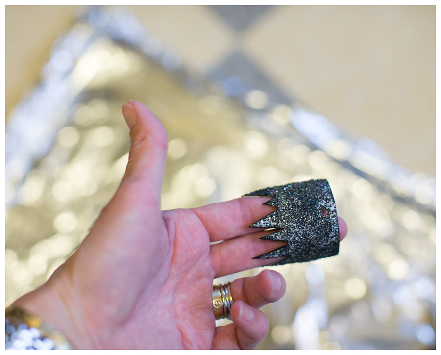 - Lightly coat the crown with glue (I put a little too much on and it started dripping :{