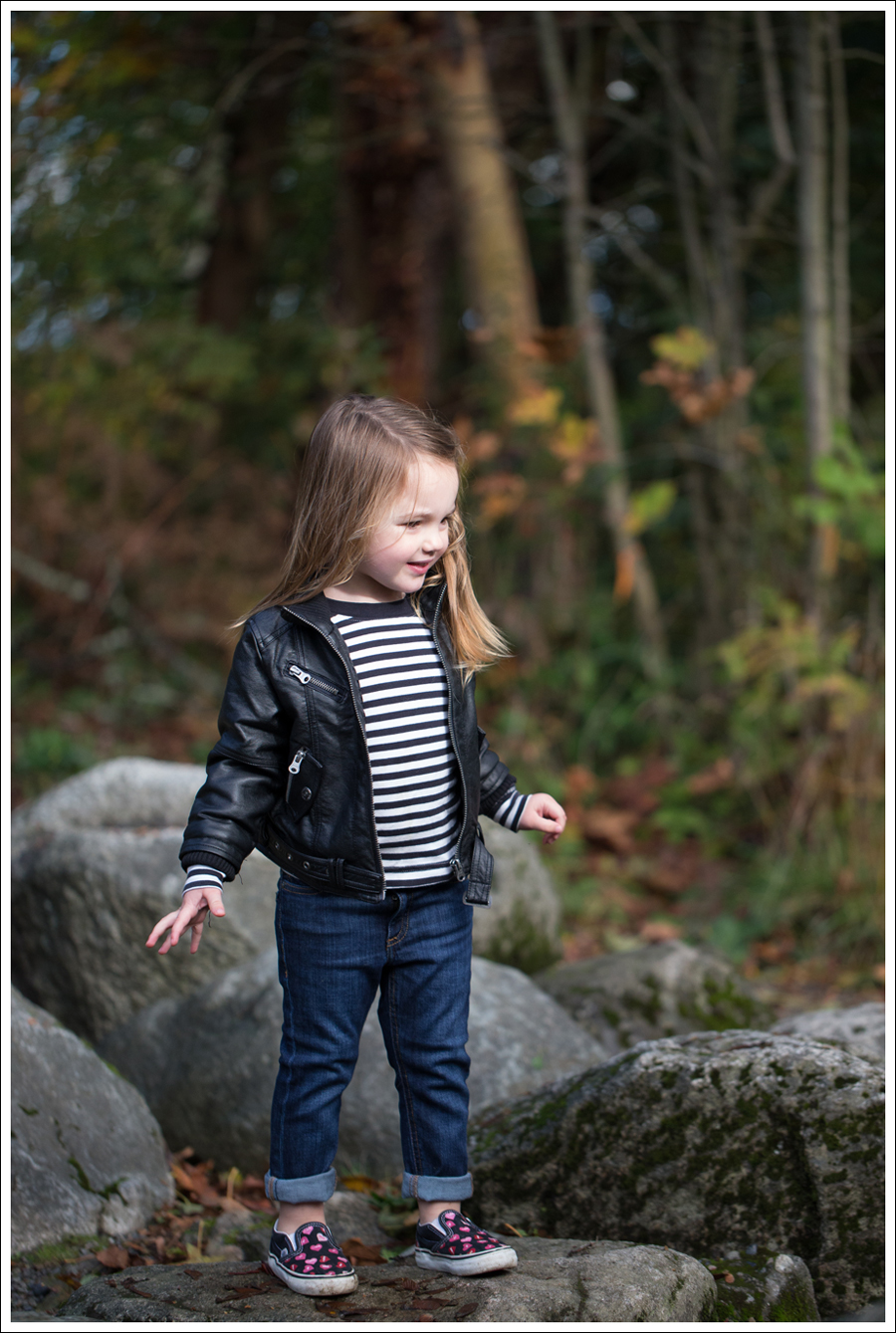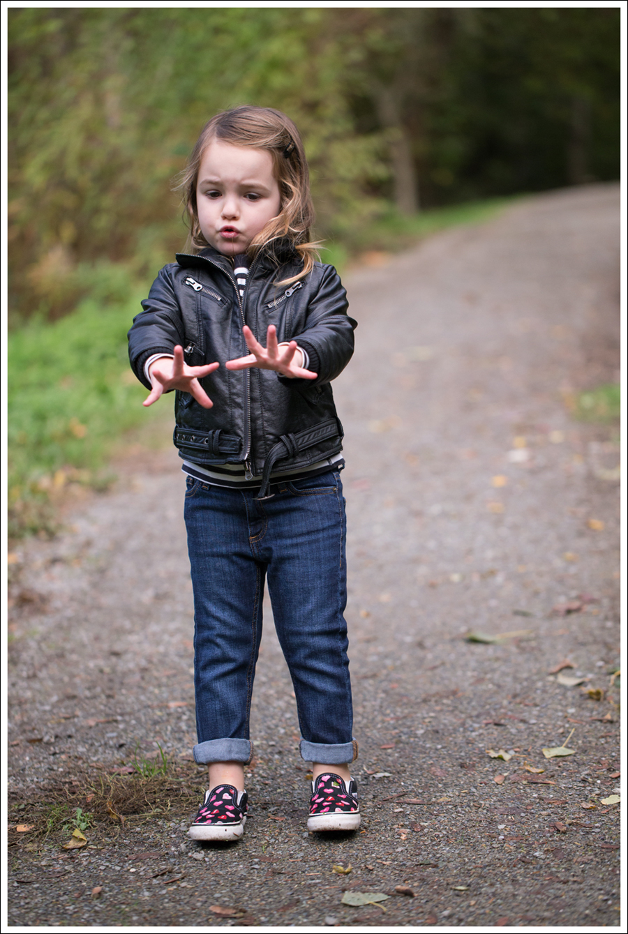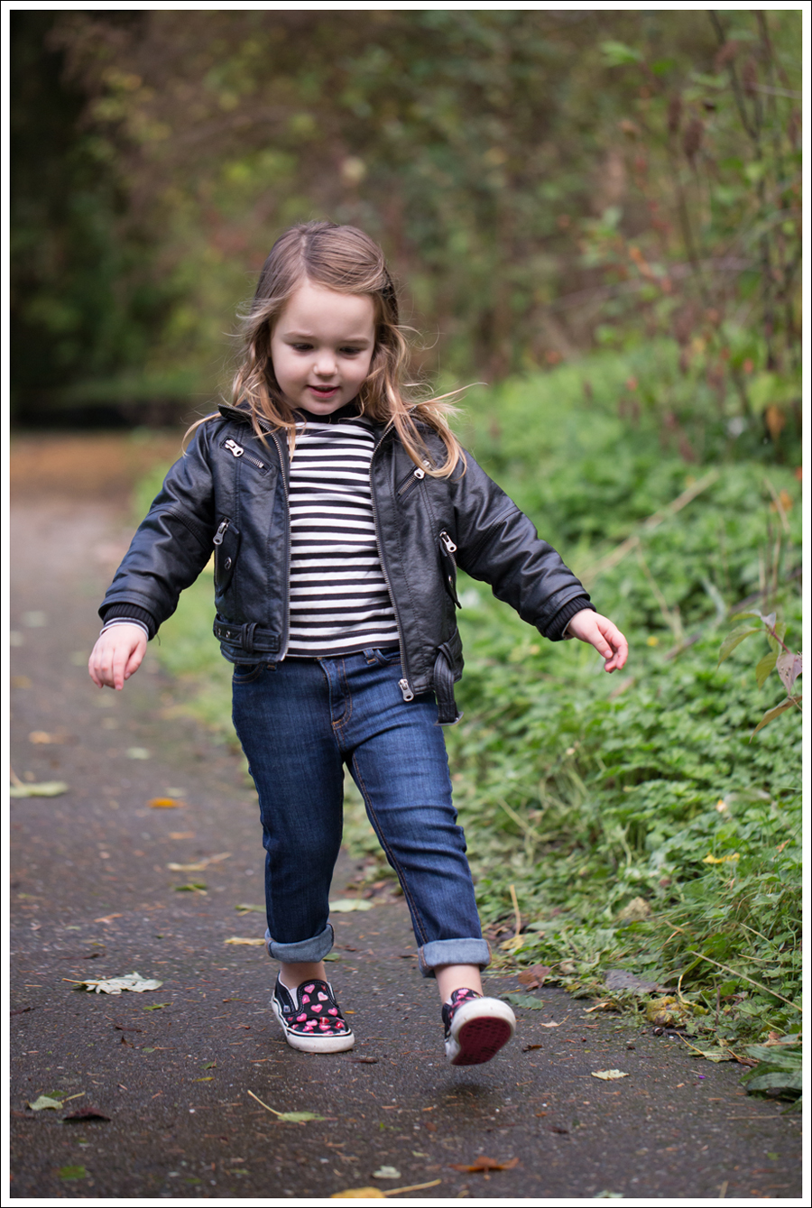 And, Maya’s moto faux leather jacket?? I almost died when I found it at the thrift store!! She balanced her look out with candy heart Vans 🙂