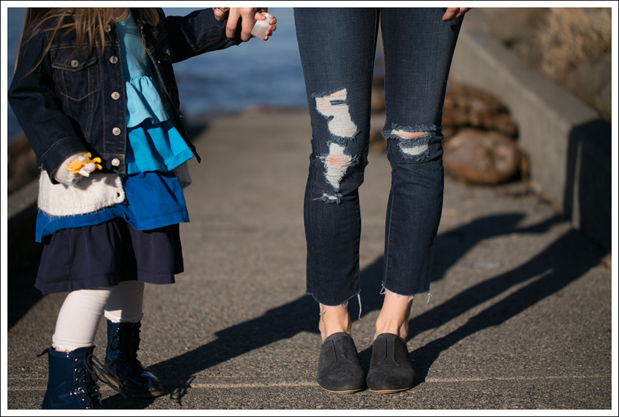 I’m the same height as you and sometimes I have the same problem, the legs of my pants are extremely long for myself. I’ve cuted quite a few pair of jeans and it looks pretty good. Love Maya’s dress and boots. Lola is exactly the same when she’s done with the pictures she really means it hahha ❤