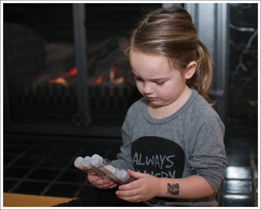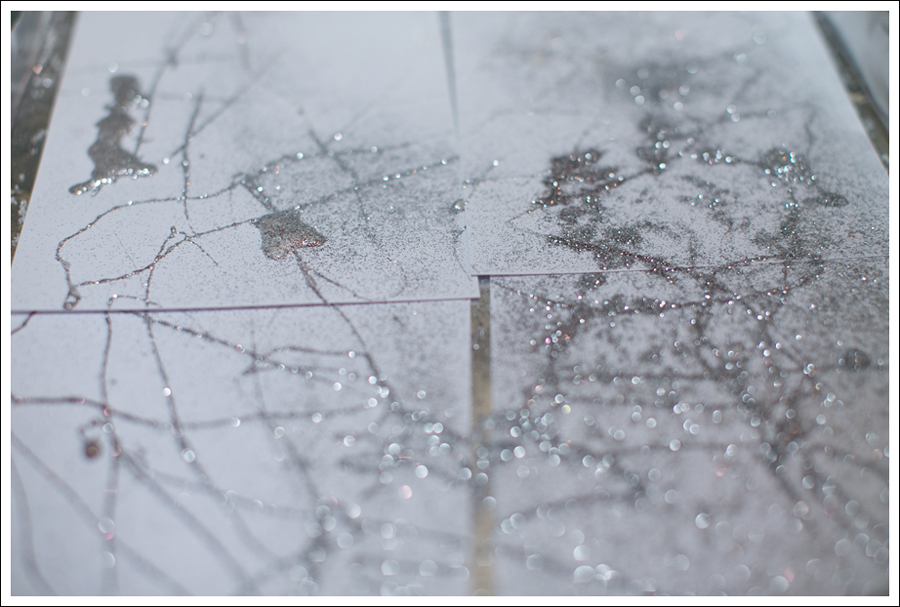 - Cookie sheet lined with tinfoil. You could just lay out an old sheet/newspapers, but I like to collect all the unused excess glitter and save it :).