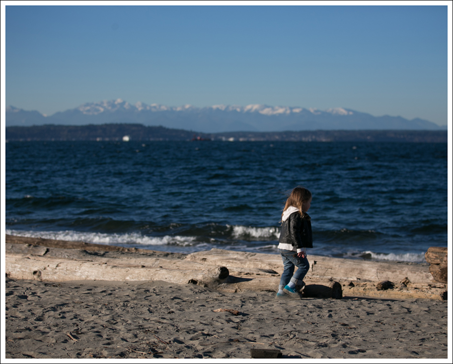 Maya has been asking to go to the beach the last few days, but it’s been so cold and WINDY!!  Granted, not as cold as other parts of the US, but for us low 20’s in the morning and mid 30’s in the afternoon is cold!  Toss in the wind down by the water and it’s closer to 30.  ANYWAY, it was sunny on New Years Eve, and it didn’t seem that windy outside, so I finally gave in and told her we could go.  Wow, what a difference a few blocks makes.  We got to the beach and all you could see was white caps and peoples hair flying everywhere.   BUT…I wasn’t about to say no to her once we were actually there!
