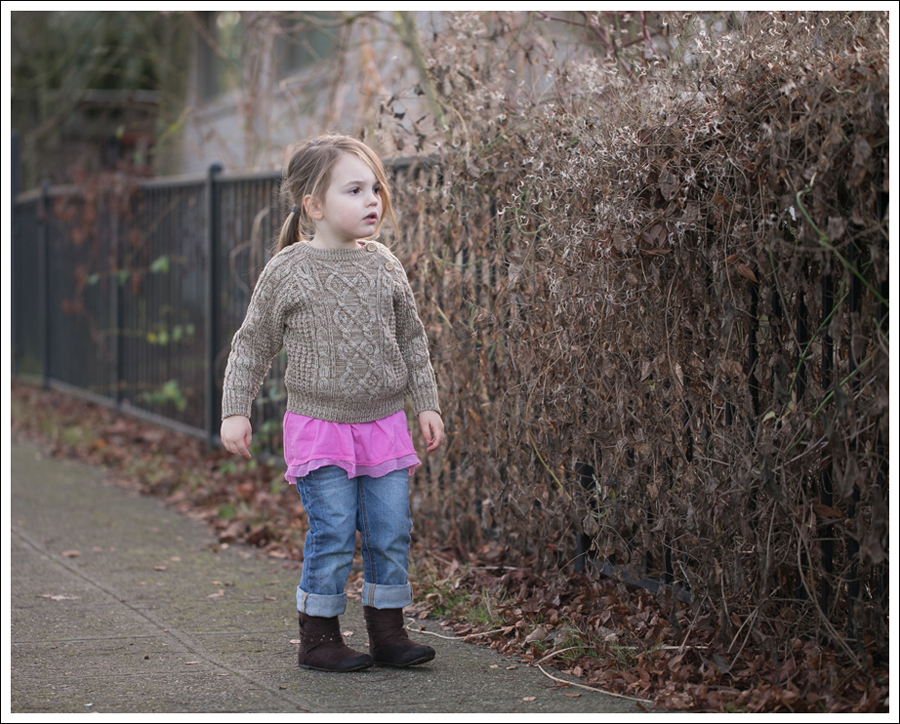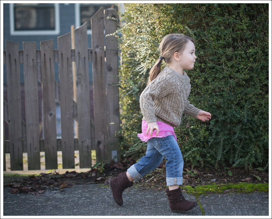 There was something about the dead vines. The color with her sweater and the pop of pink? Loved it!