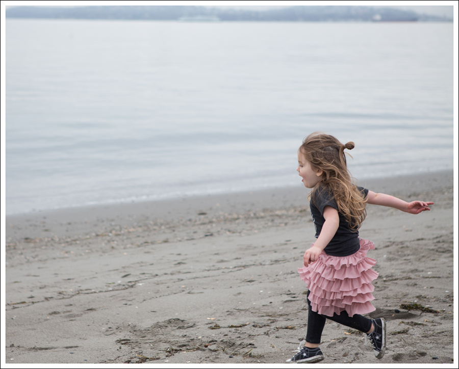 Normally the minute her feet hit the sand, she is off and running.