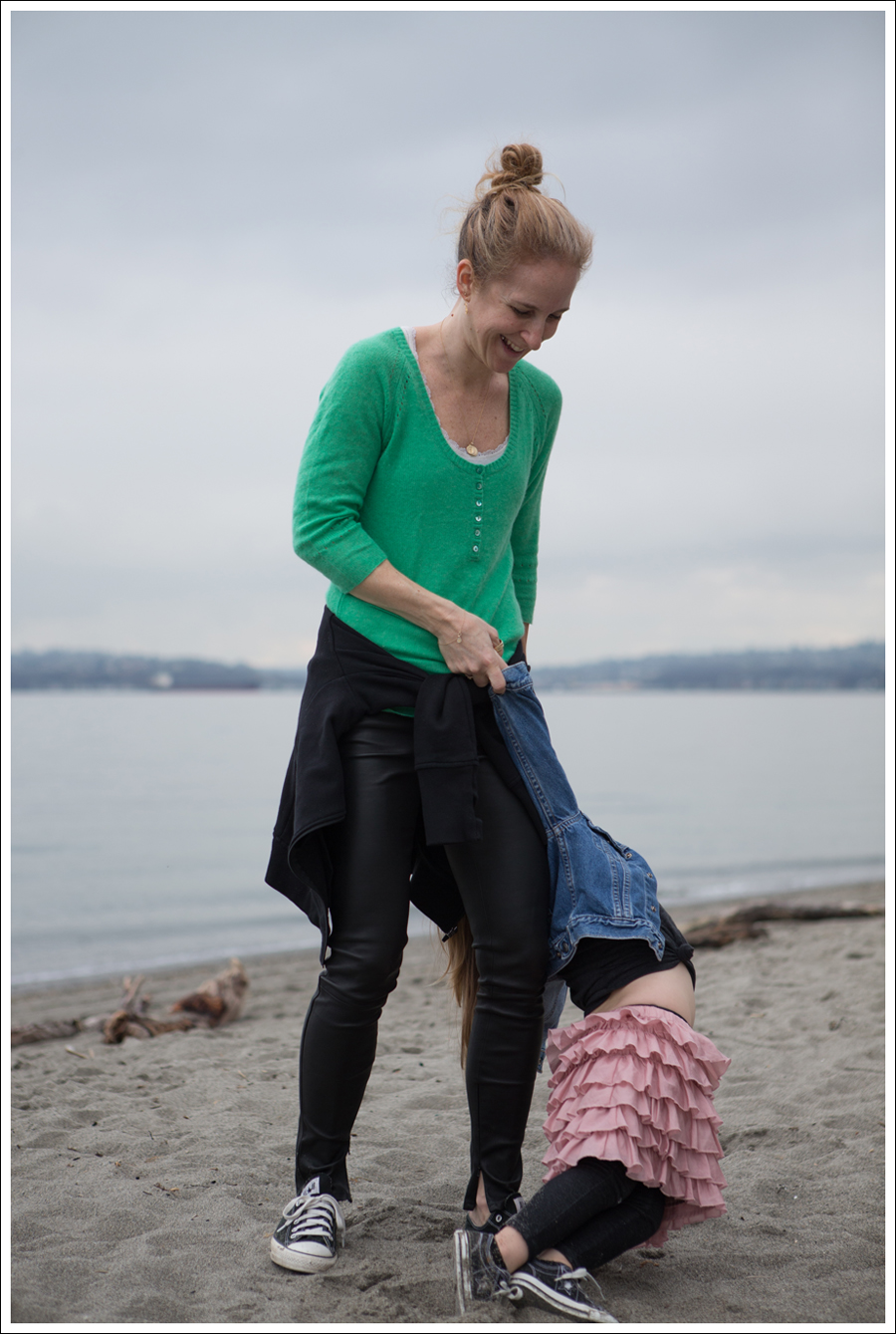 I’ve talked about my love of leather pants a few times. I’m continually impressed with how versatile they are, although that could be me making them versatile haha! I think I had hoped that was going to be the case, but I still wondered how comfortable I would be wearing them out and about. Truth be told, I can’t believe how comfortable I feel. They truly are the best “Mom pant”! Spills, goobers, mud, and sand wipe right off as if it never happened! Most come with lycra backing, so they are totally stretchy and comfortable-WIN.