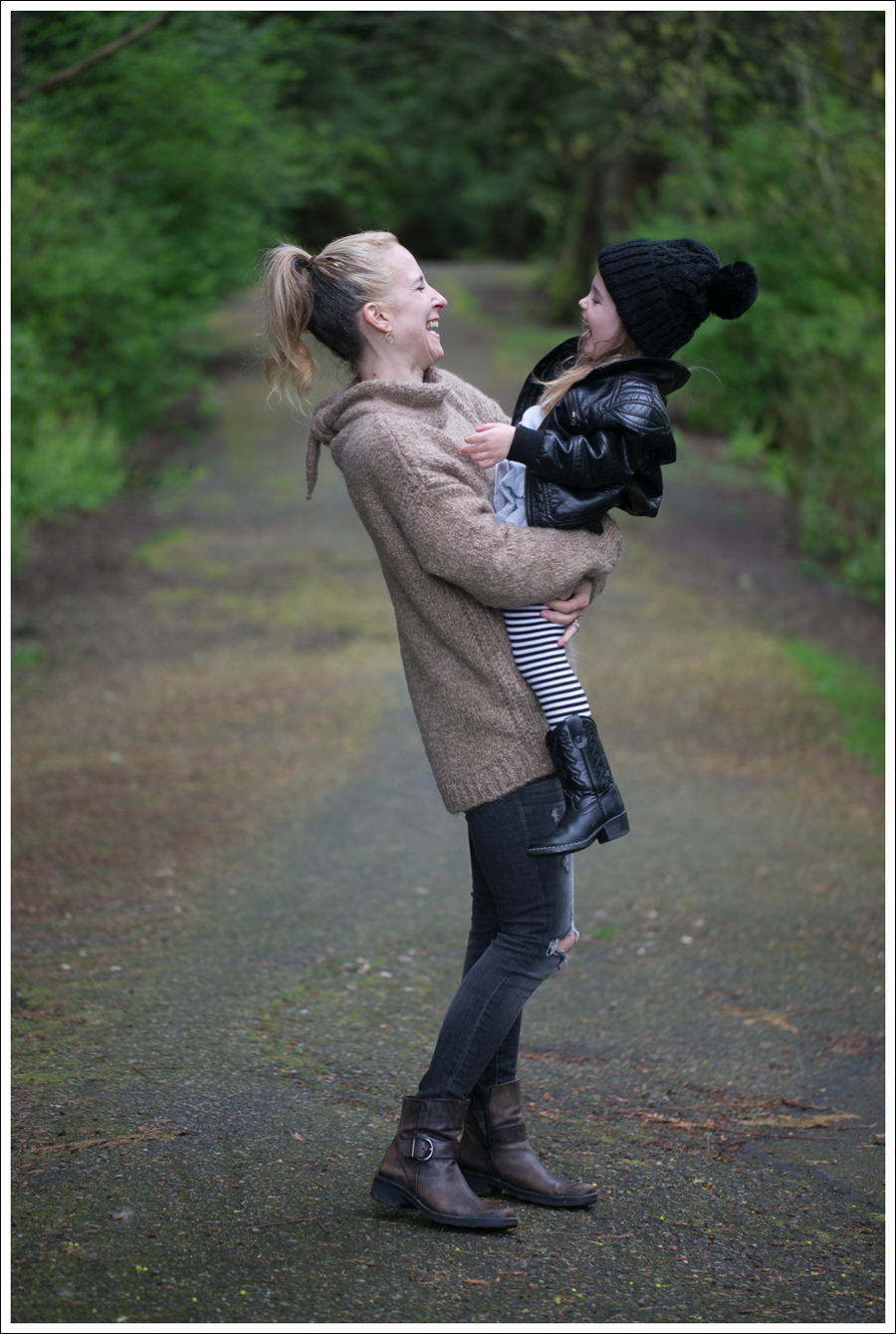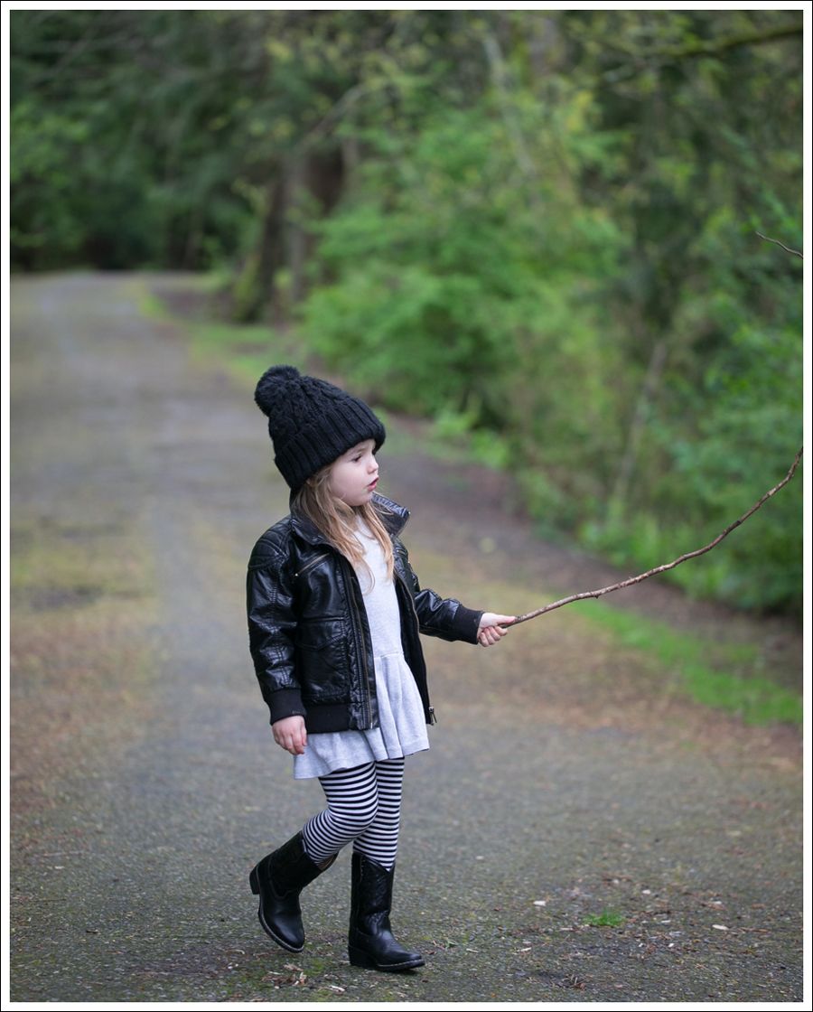It’s been rainy off an on lately, which is more normal for this time of year in Seattle. It was kind of nice to put on a cozy sweater and boots again for a change! We were out running errands, and by the time we came back home the rain had stopped. SO…we headed off to this little park by our house for a bit.