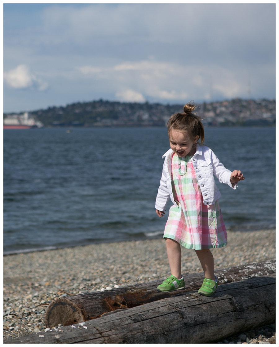 And then, she started running along the LOG! I was both freaking out that she would fall in all those rocks, and totally proud of her balance!!