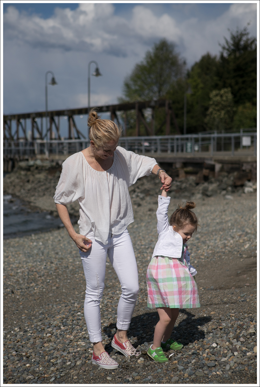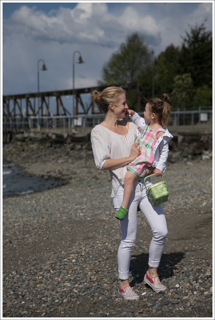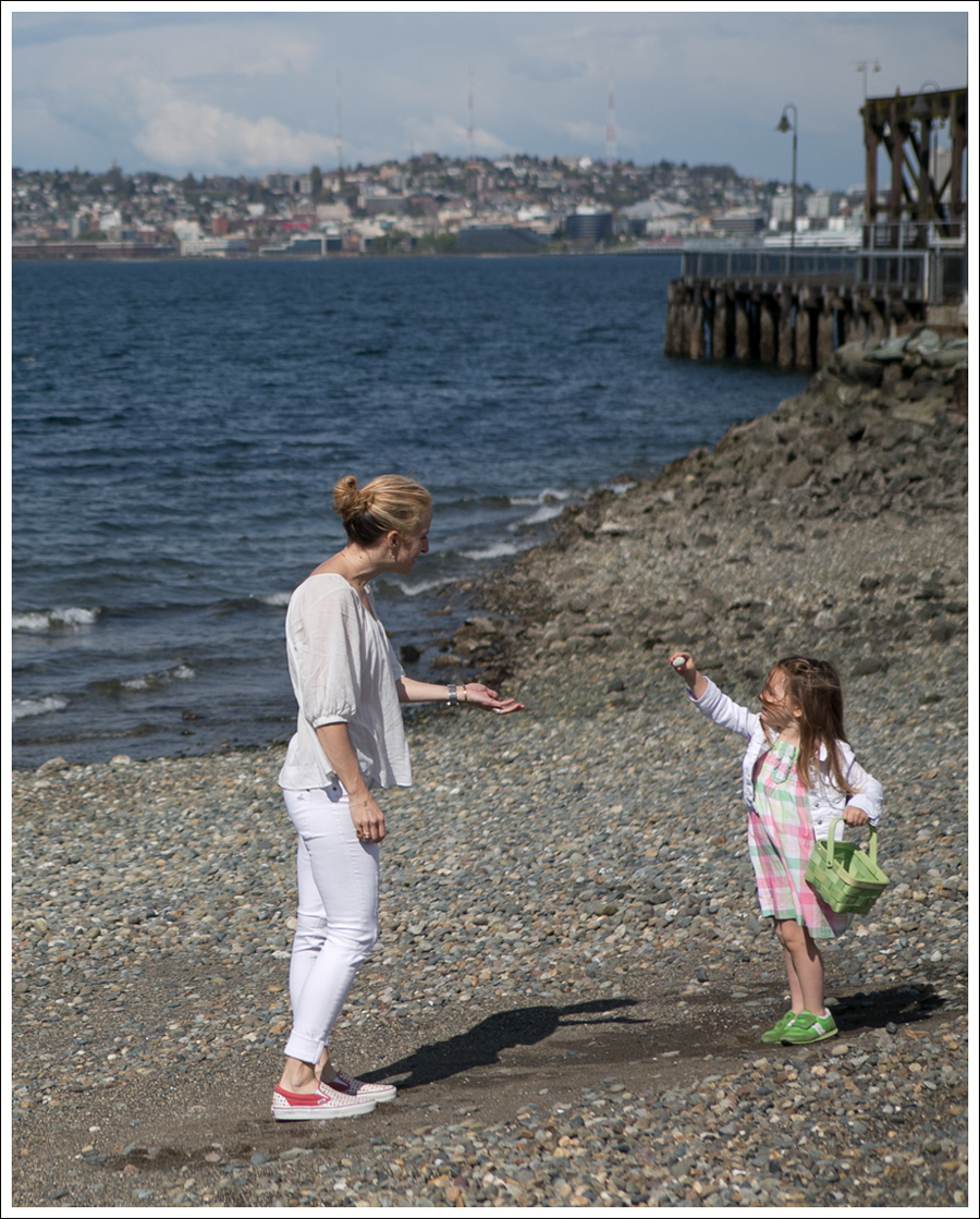 After the morning Easter festivities, we put on some comfy shoes and headed down to a rocky beach to look for beach eggs. 🙂