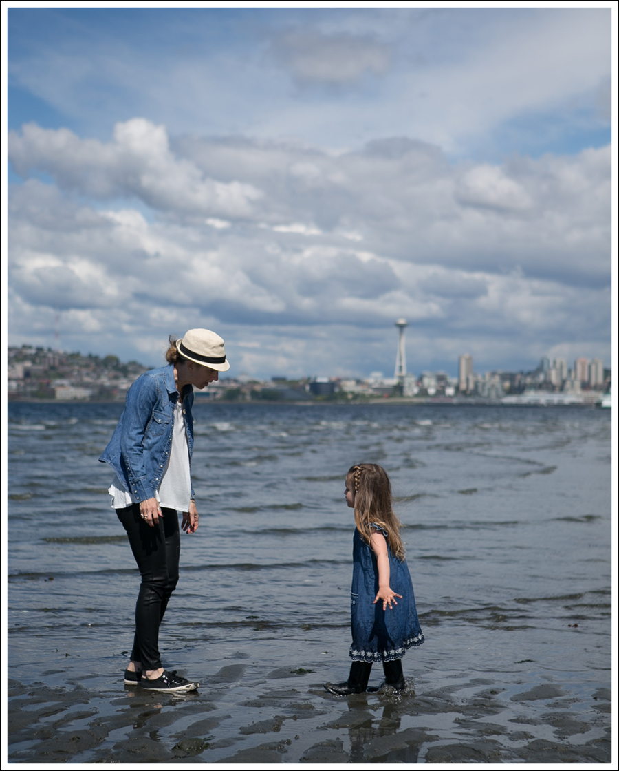 I’ve talked over and over about my love of leather pants. Vegan Leather has it’s own perks. Besides the humanitarian aspects… I was totally fine wearing these leggings down on the beach. I knew I was going to get wet and that Maya would likely throw wet sand on me (check and check). And since I scored them new with tags on eBay for $9, I wasn’t worried one bit. With one wet wipe all was back as it was. 🙂