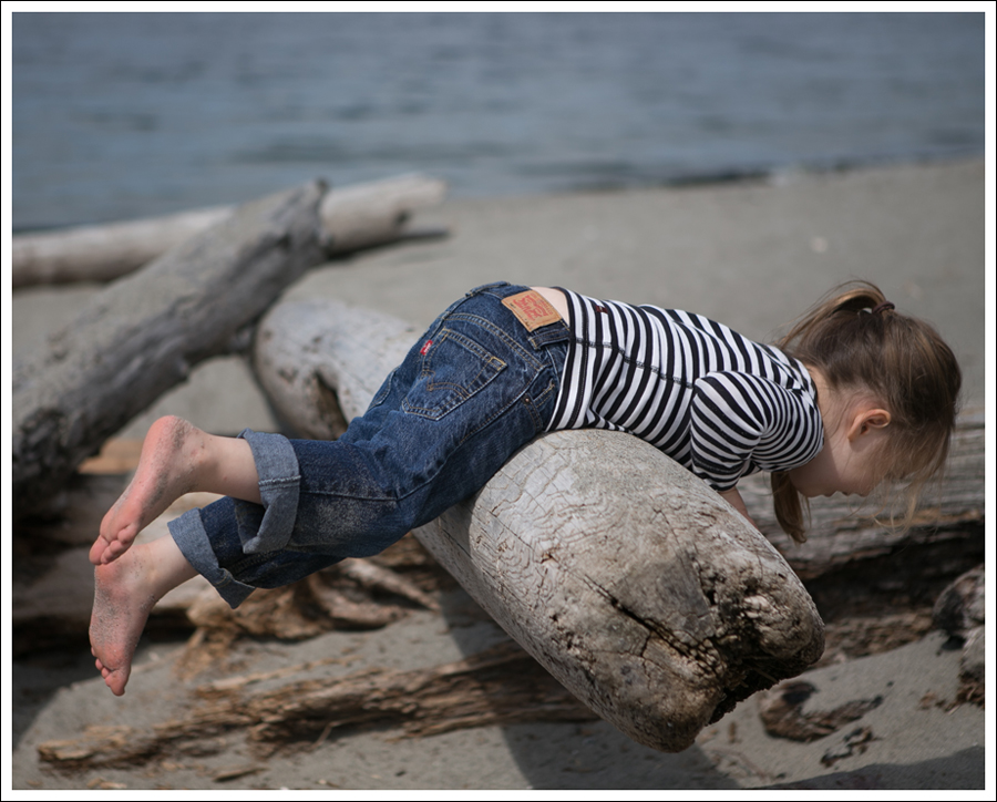 B) Maya was feeling a little off (edited to add, she was getting sick). I kept asking her if she wanted to find sea glass (no, thank you), balance on the log with me (no thank you), play “chase me” (no thank you), go run on the beach (no thank you). I’ll admit, it was nice of her to be polite, but ugh.