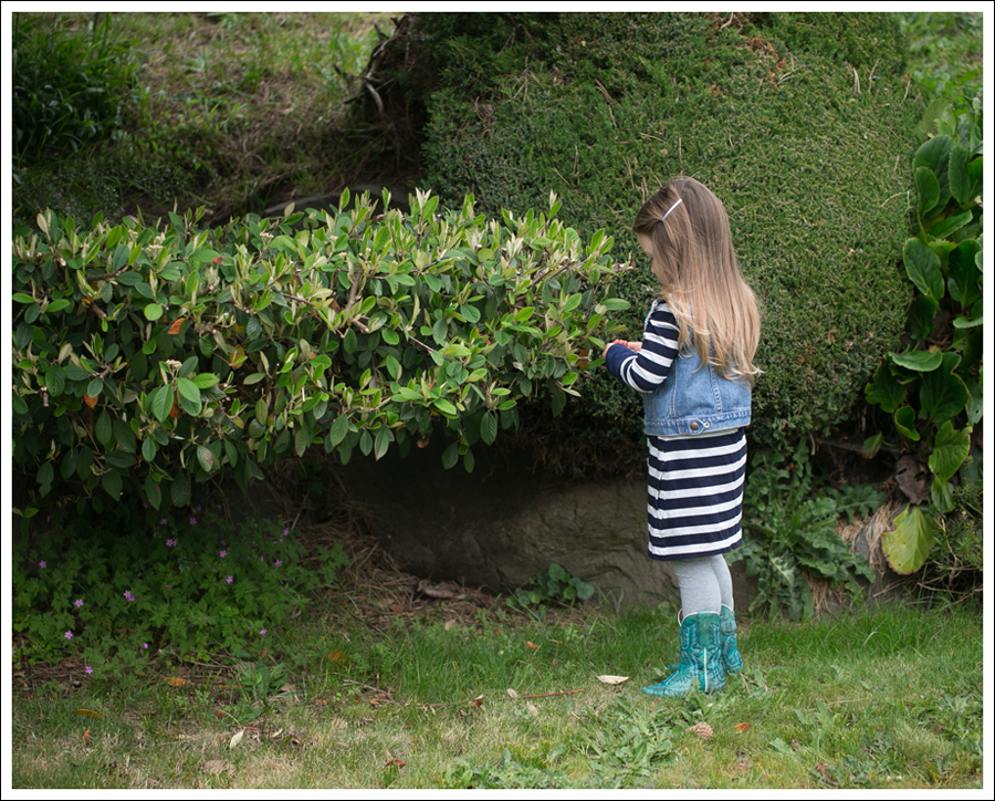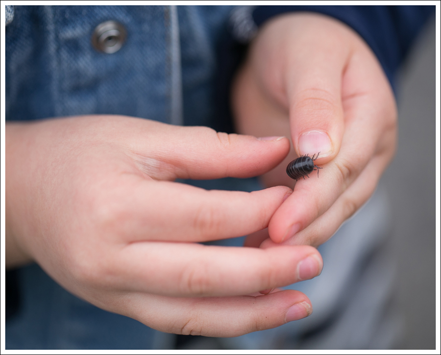 Found a potato bug! I remember loving to play with potato bugs when I was little. She was a liiiiiittle scared to pick him up on her own at first though 🙂