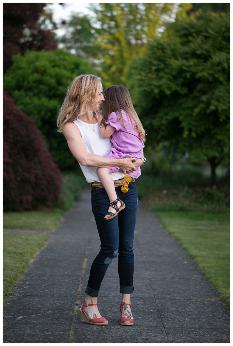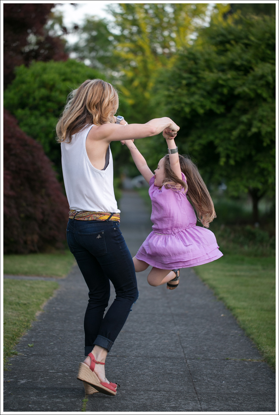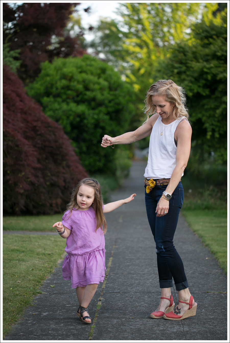 Maya calls this her “Rapunzel dress”. I have no idea why, but I totally know what one she means when she asks to wear it. I usually say no (it’s silk…), but since she’d been super sick for the past 4 days, I said yes. Truth be told. Getting out of our self imposed lock down to play dress up for a little bit sounded really nice.