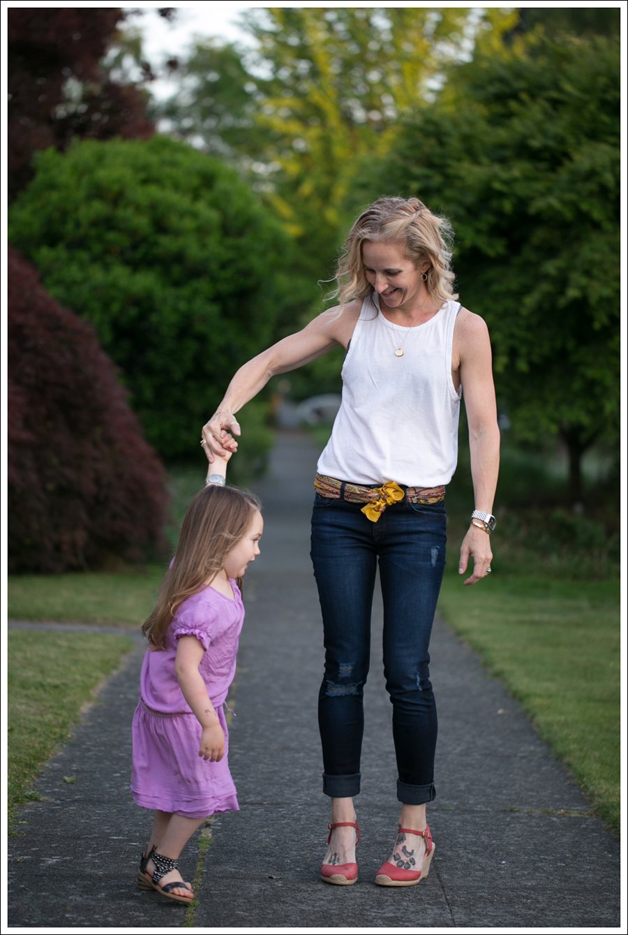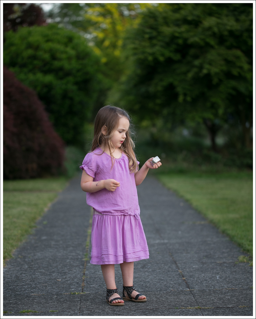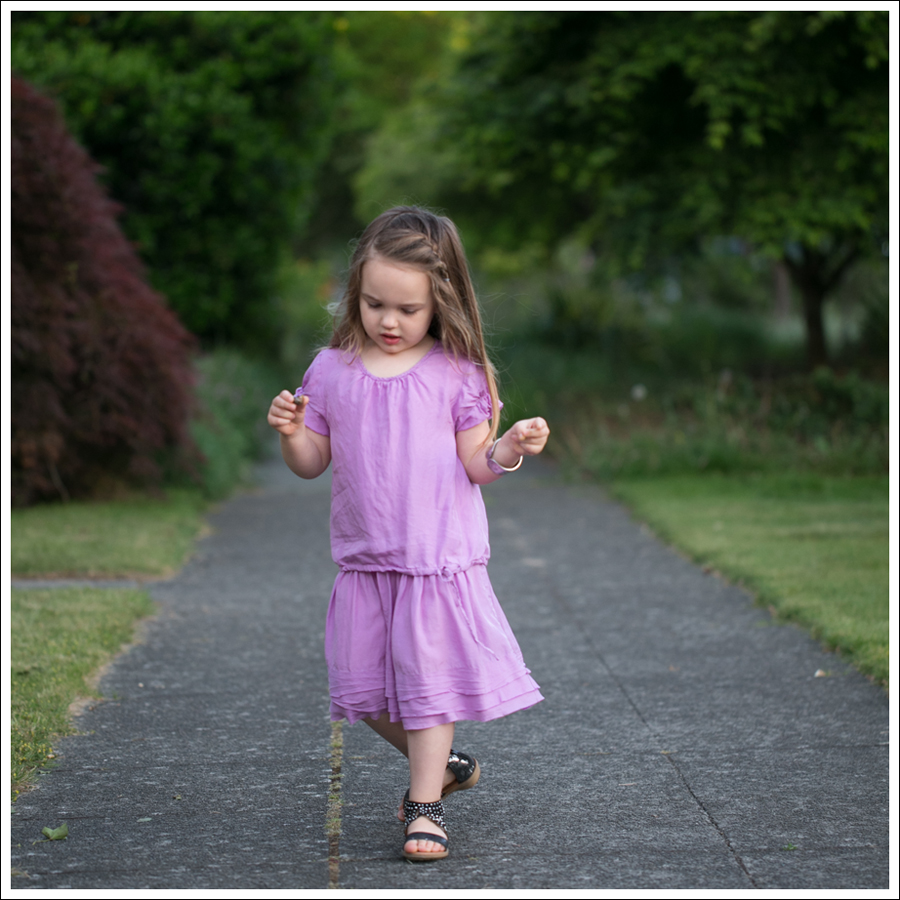 Maya calls this her “Rapunzel dress”. I have no idea why, but I totally know what one she means when she asks to wear it. I usually say no (it’s silk…), but since she’d been super sick for the past 4 days, I said yes. Truth be told. Getting out of our self imposed lock down to play dress up for a little bit sounded really nice.