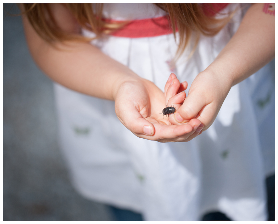And, of course she found a potato bug, because she is absolutely obsessed!