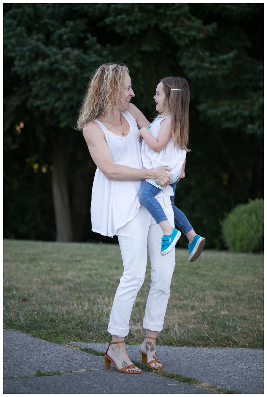 There’s something about heels with an outfit that doesn’t really look like it warrants heels. Like loose ripped jeans. Yet, I like it! These are actually skinny straight jeans that I bought to wear when I was pregnant with Maya. They are a size too big, but I like that they fit a little looser. Like a skinny boyfriend jean 🙂 These were the first pair of DL1961 Jeans I bought that started my obsession…