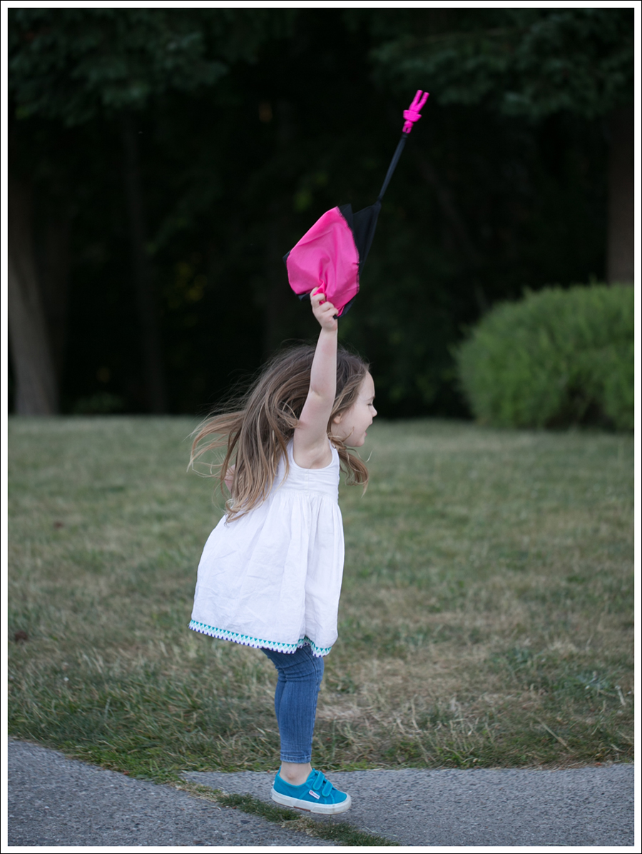 I got her this little parachute lady that you throw up in the air and it floats down. Well, her brilliant idea was that it would float really high if I threw her and she threw it. Got to be impressed with her logic. It worked… 🙂