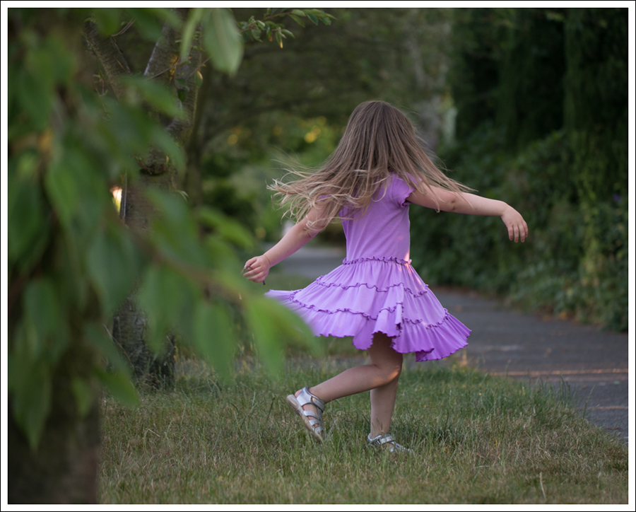 And…there are still people in our neighborhood who water their lawns… Which is heaven for Maya. Preeeeeetty sure they wouldn’t be overly excited that she was running through their yard, but whatever. OOPS! And, truth be told, this happened at the BEGINNING of our walk, but I thought it looked better to have it at the end hahaha. Thankfully the sun dried her dress and hair out quickly!