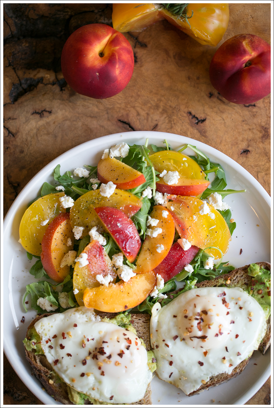 I mean, need I say more??? I was inspired to make this salad by the amazing Danielle Kartes from Rustic Joyful Food. She posted a similar salad on Intagram about 45 minutes before I was supposed to make dinner. I had everything on hand, but substituted arugula where she used spinach, and then accidentally forgot to put balsamic vinegar on-didn’t need it!!