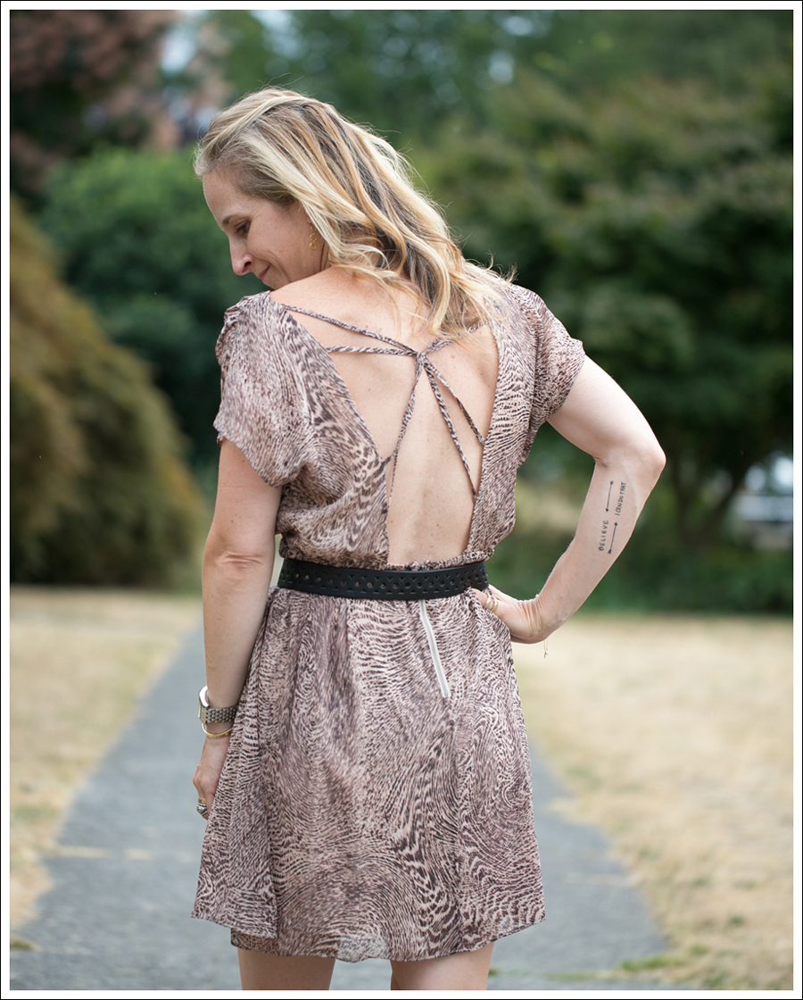 LOVE the back!!! I’ve talked many times about my love of interesting backs. I love that the dress looks sweet and girly from the front, but then….BAM! 🙂