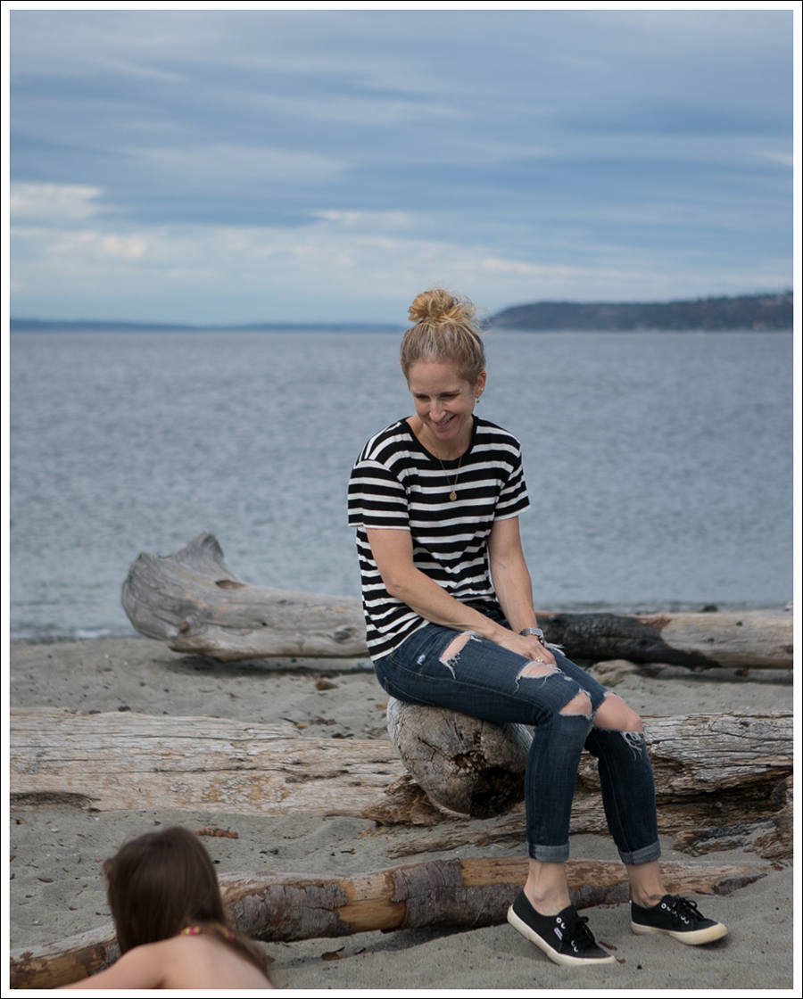 Seriously, DYING!!! She thought it was so funny to just DIVE off this log. Most times she did a total belly flop on the sand, yet came up laughing! And…then did it again 🙂