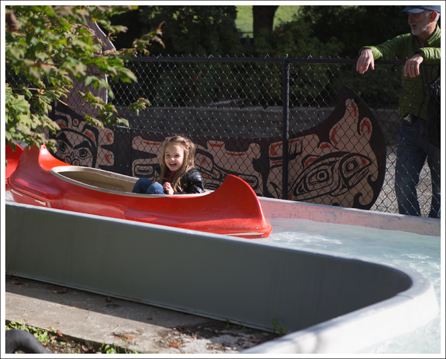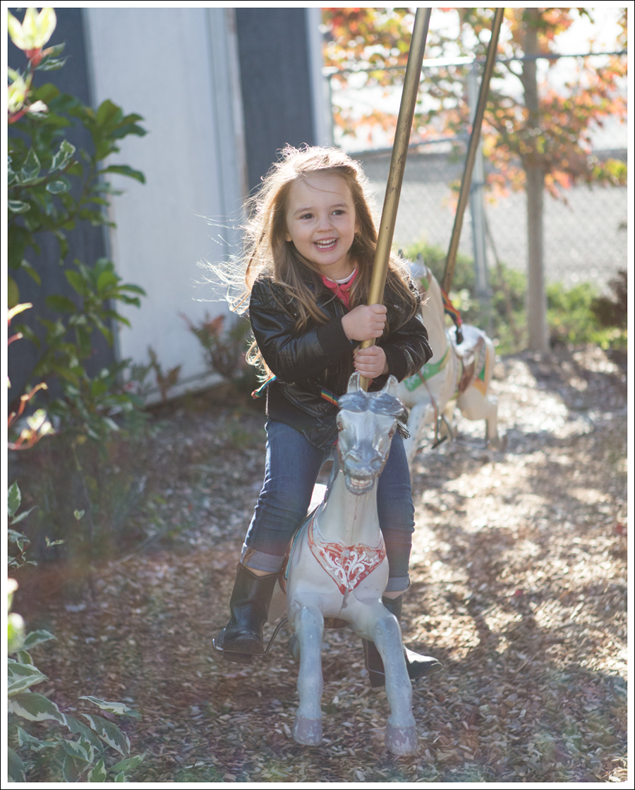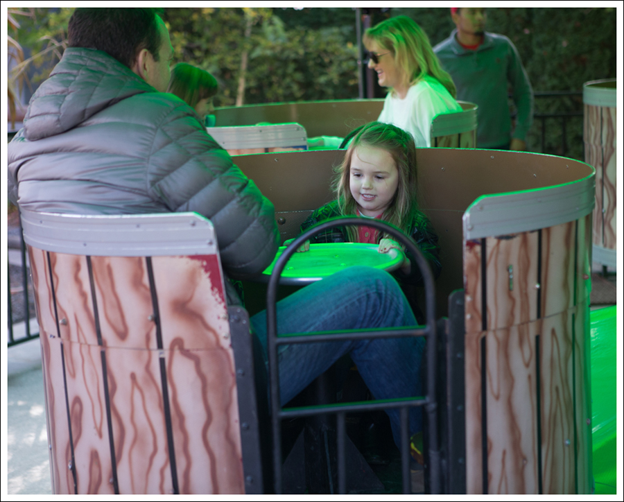 My dad took a hilarious video of this. You get to control how fast you spin. The Huz kept asking her. “Do you want to go faster? Are you too dizzy??” Nope, they SPUN AWAY!! I felt a little nauseous watching it!