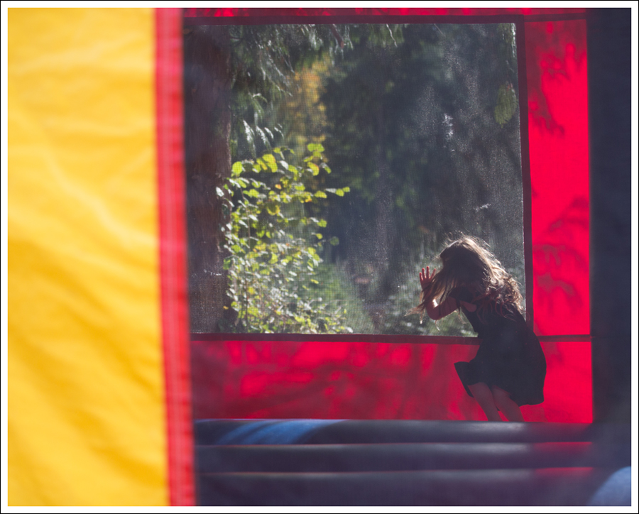 Someone was pouting because she wanted to go on the bouncy houses after about 30 seconds of pumpkins. Thankfully she bounced back after I said she could dance instead 🙂