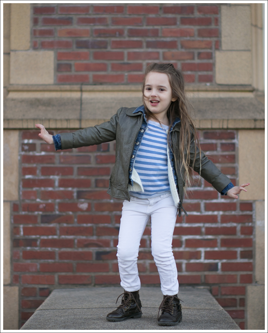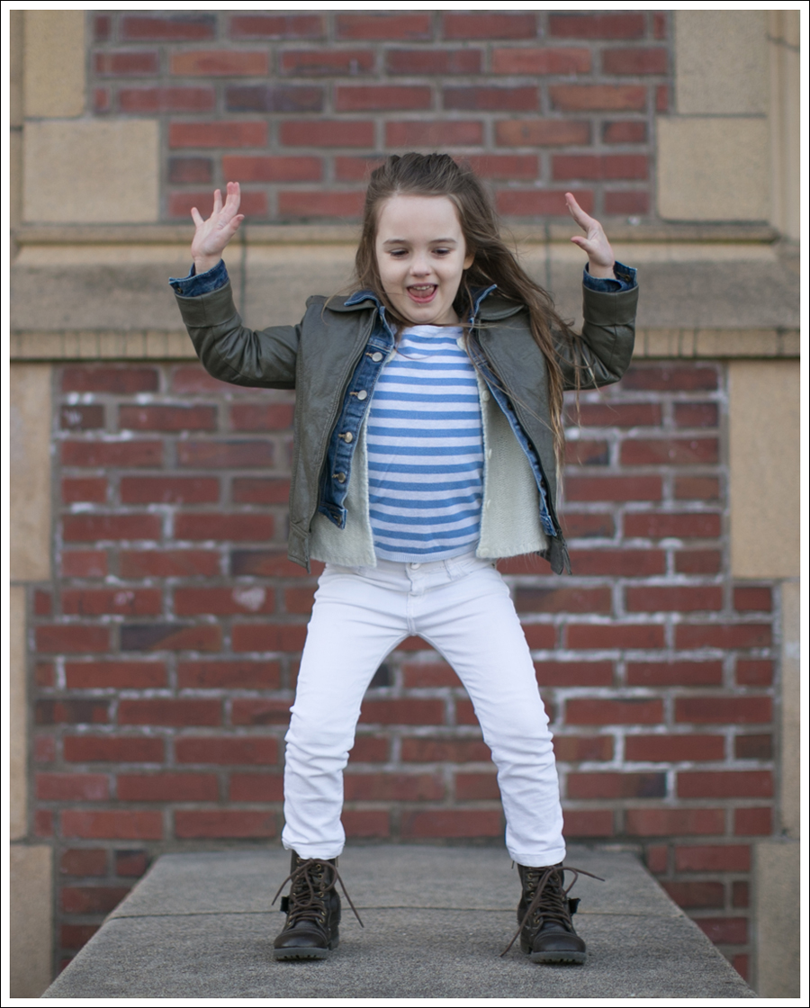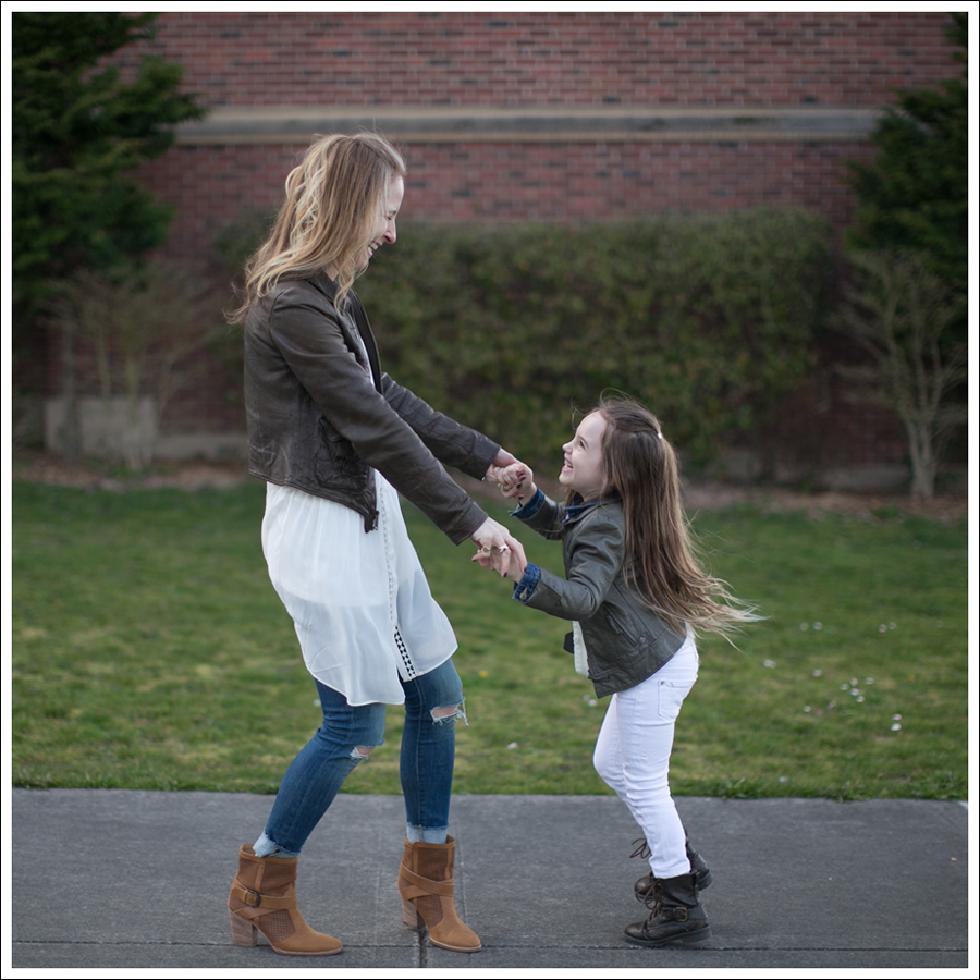 I wore this dress before and took it from day and then to night. What I hadn’t realized when I tried it on was that the slip that came with it was SO SHORT!! I added a 2nd slip when I wore it alone as a dress, but decided it would be perfect over a pair of skinny jeans! I love putting skinnies over dresses that are a liiiiiittle too short for…well, ANY kind of movement. Especially the case when you are dealing with your kids! Running after them? Bending over?!! Um…not happening!