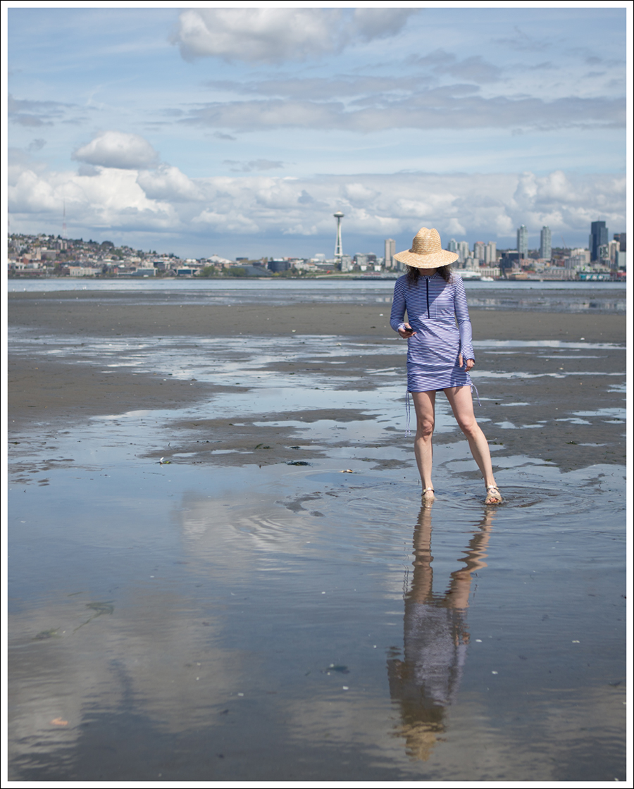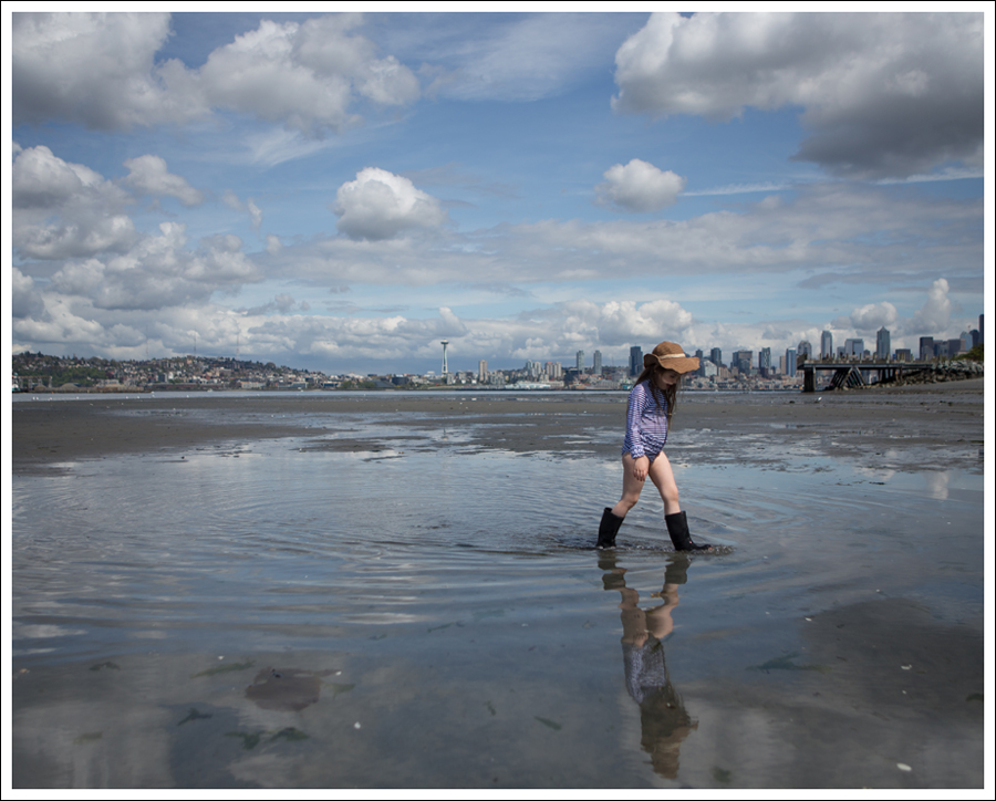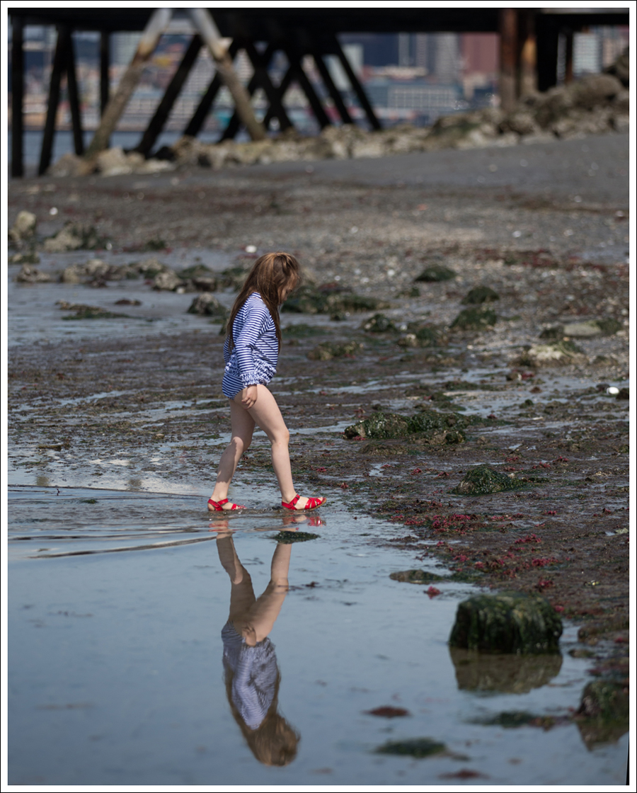 Taking pics with a shutter release and tripod in water was not the easiest.  I usually set something down where I’m going to stand, so that the focus is on us.  Not so easy to do in the water.  Oh, and at first the shutter release wasn’t working.  Here I am manually pushing it, AND standing where I originally meant to stand (getting my full reflection).  Thankfully I figured out what was wrong with the shutter release.