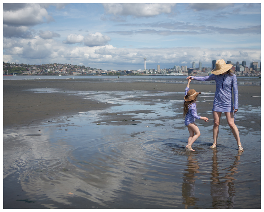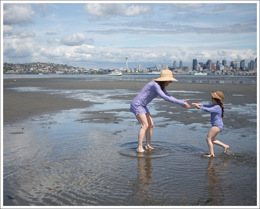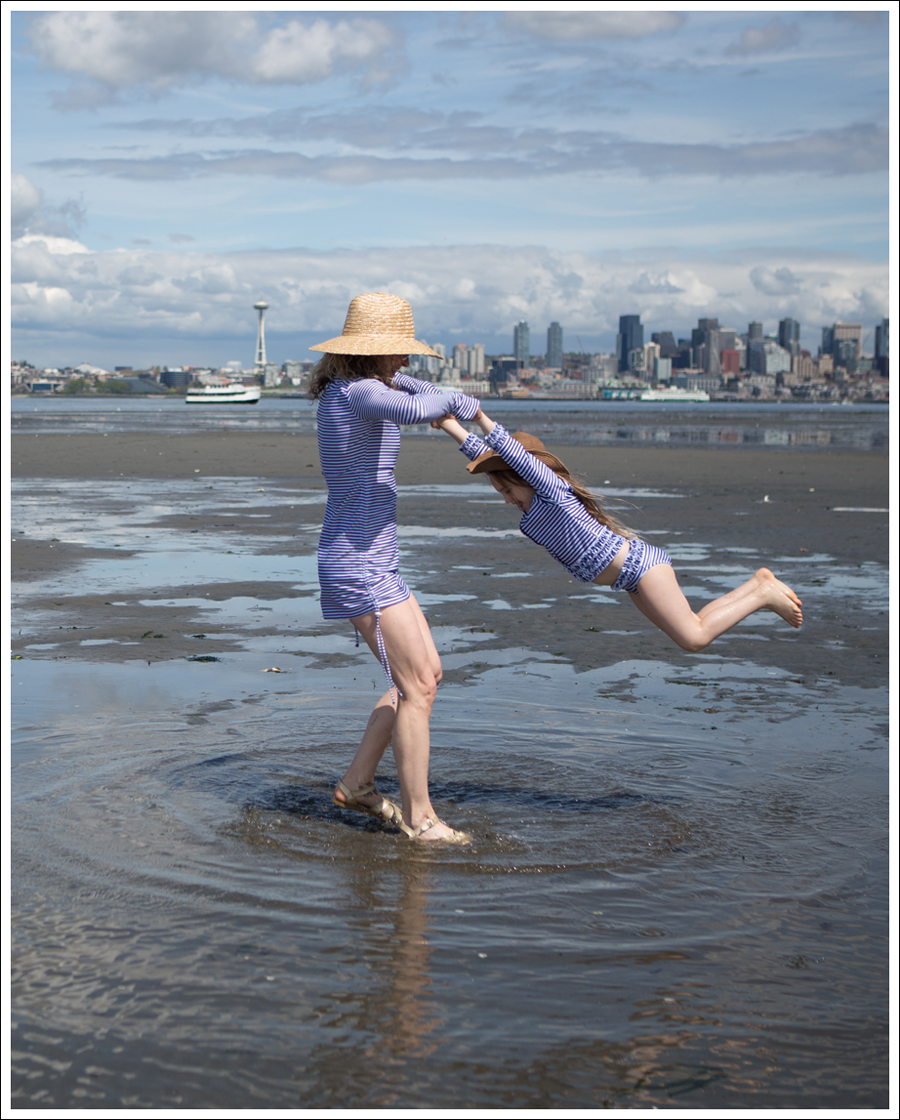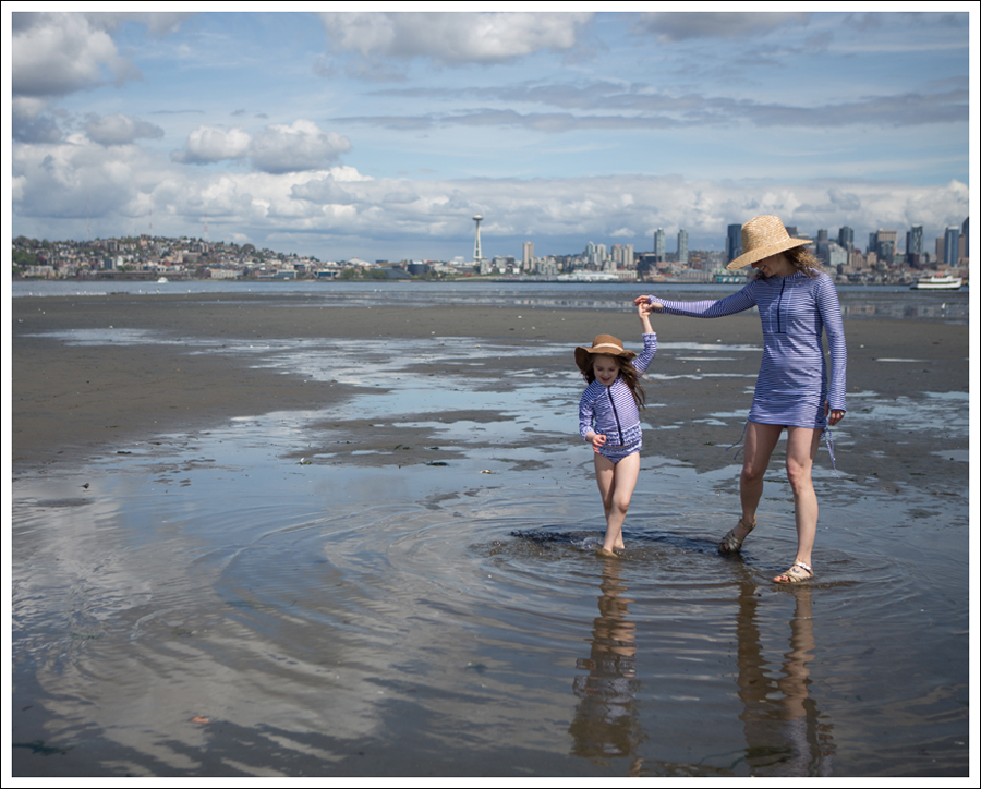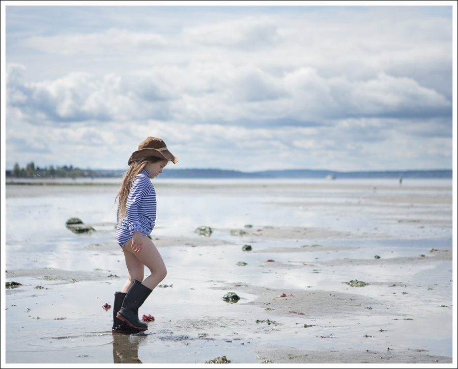 I was super excited that we finally got a nice day with temps in the 60’s and an amazing low tide!  So, we threw on our matching Swimzip suits and headed out to play.  Warning…I took A LOT of pics!