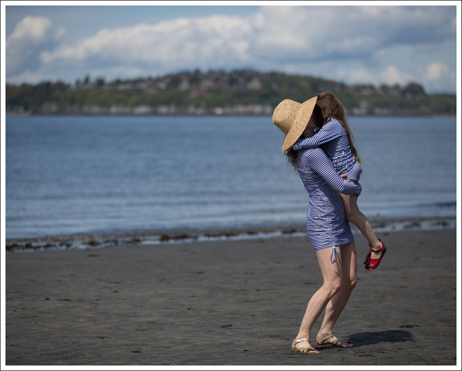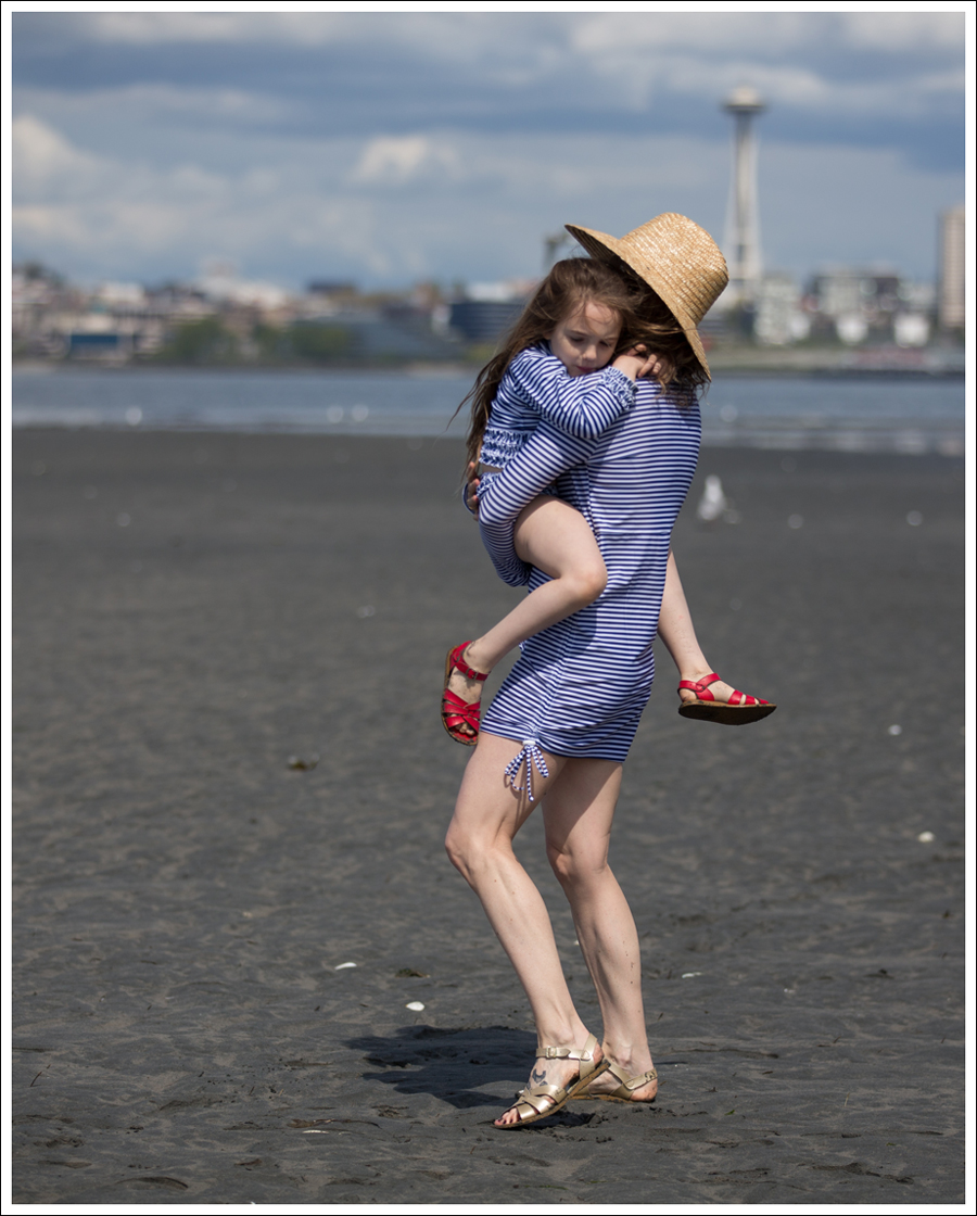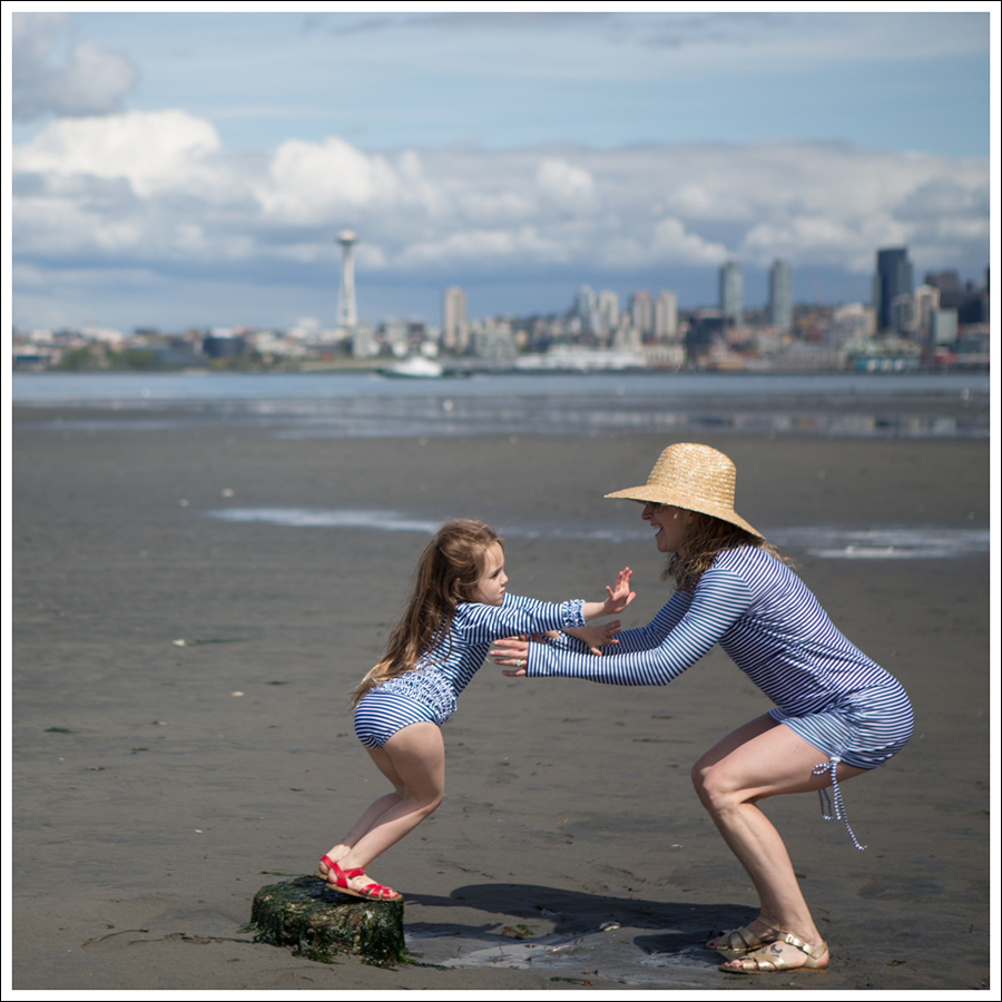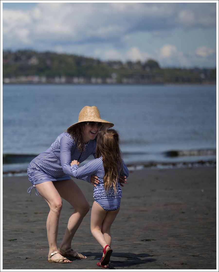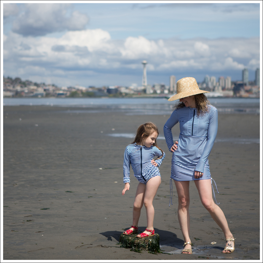 I was super excited that we finally got a nice day with temps in the 60’s and an amazing low tide!  So, we threw on our matching Swimzip suits and headed out to play.  Warning…I took A LOT of pics!