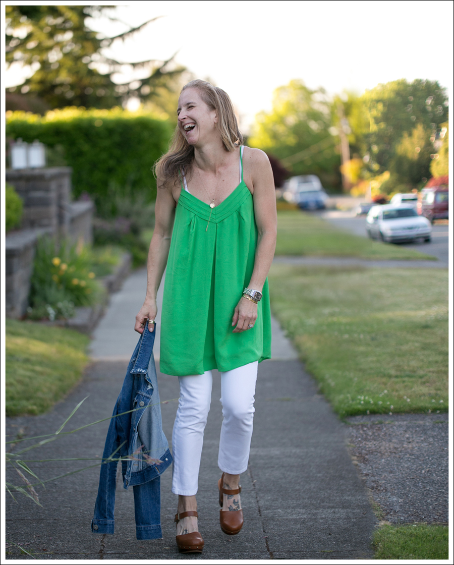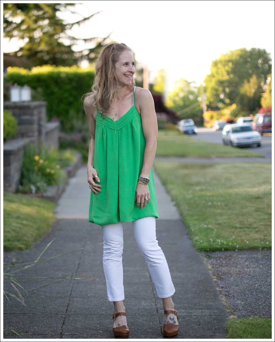 We took these when we got home from dinner. I’ve had this top (ok, technically it was sold as a dress, but…that never happened!) for SO long, and I still love it!   I think it’s such a fun alternative for those of us that might be past the point of a mini dress to pair it with a pair of skinny jeans!