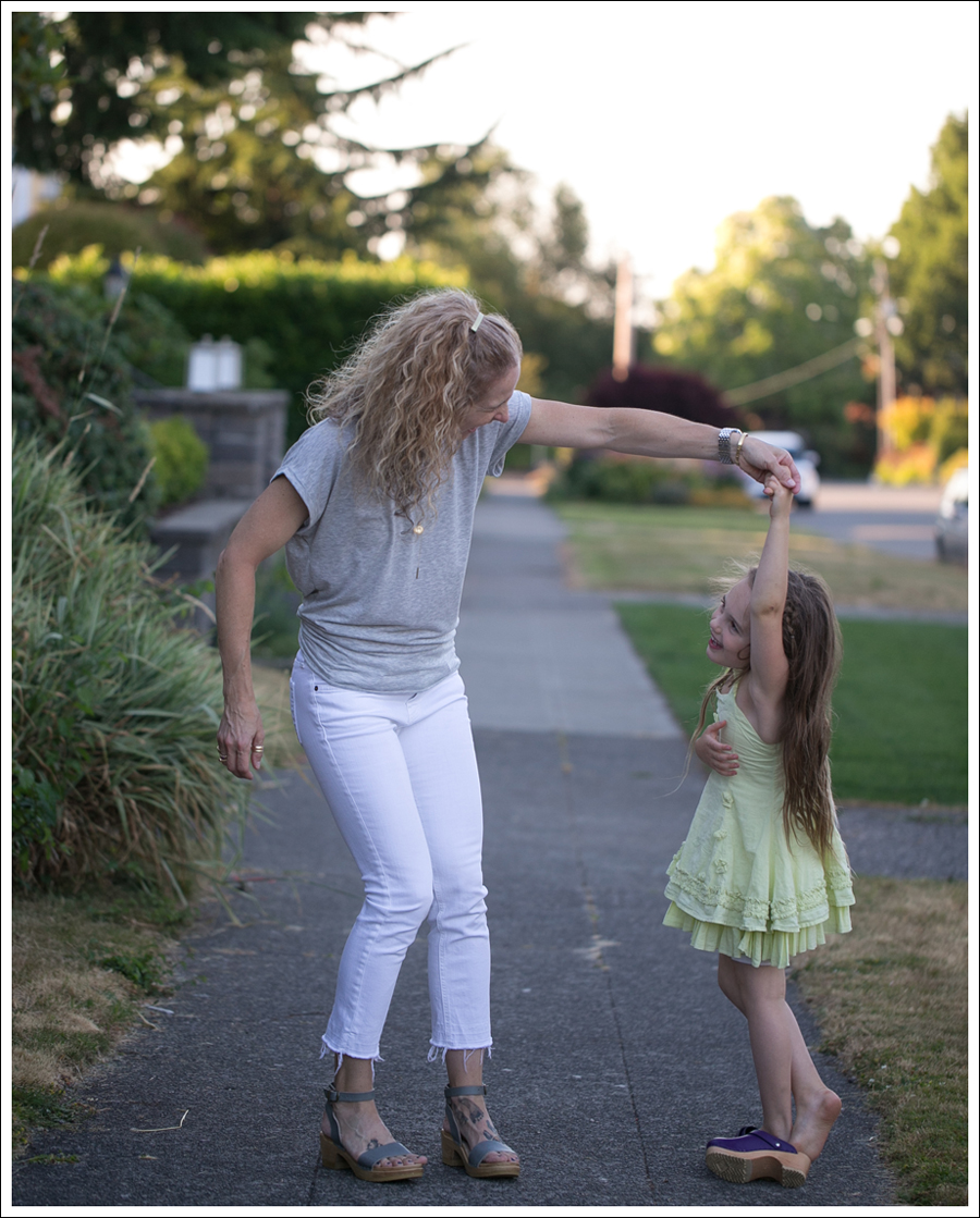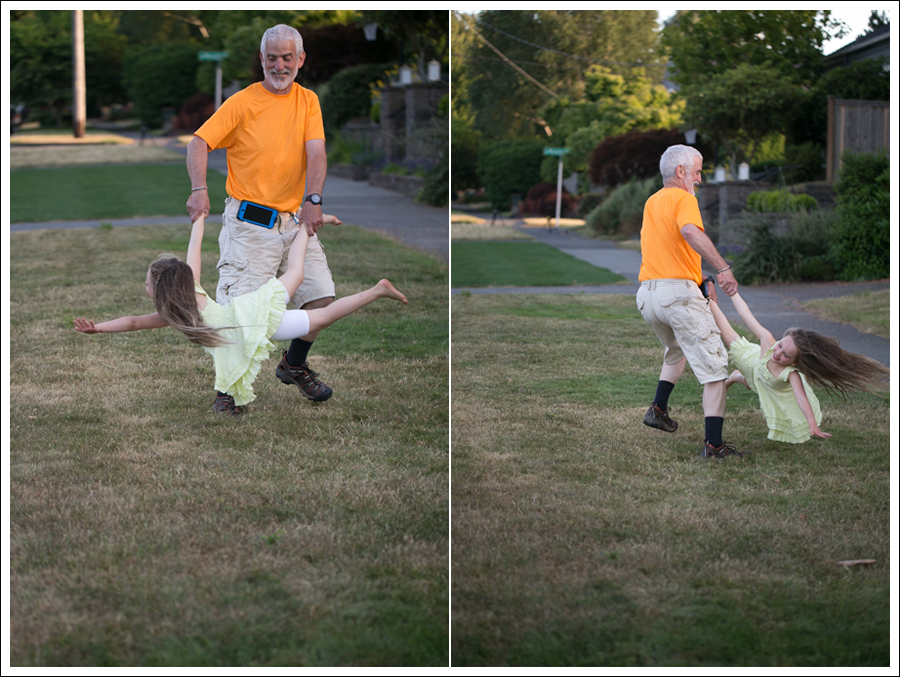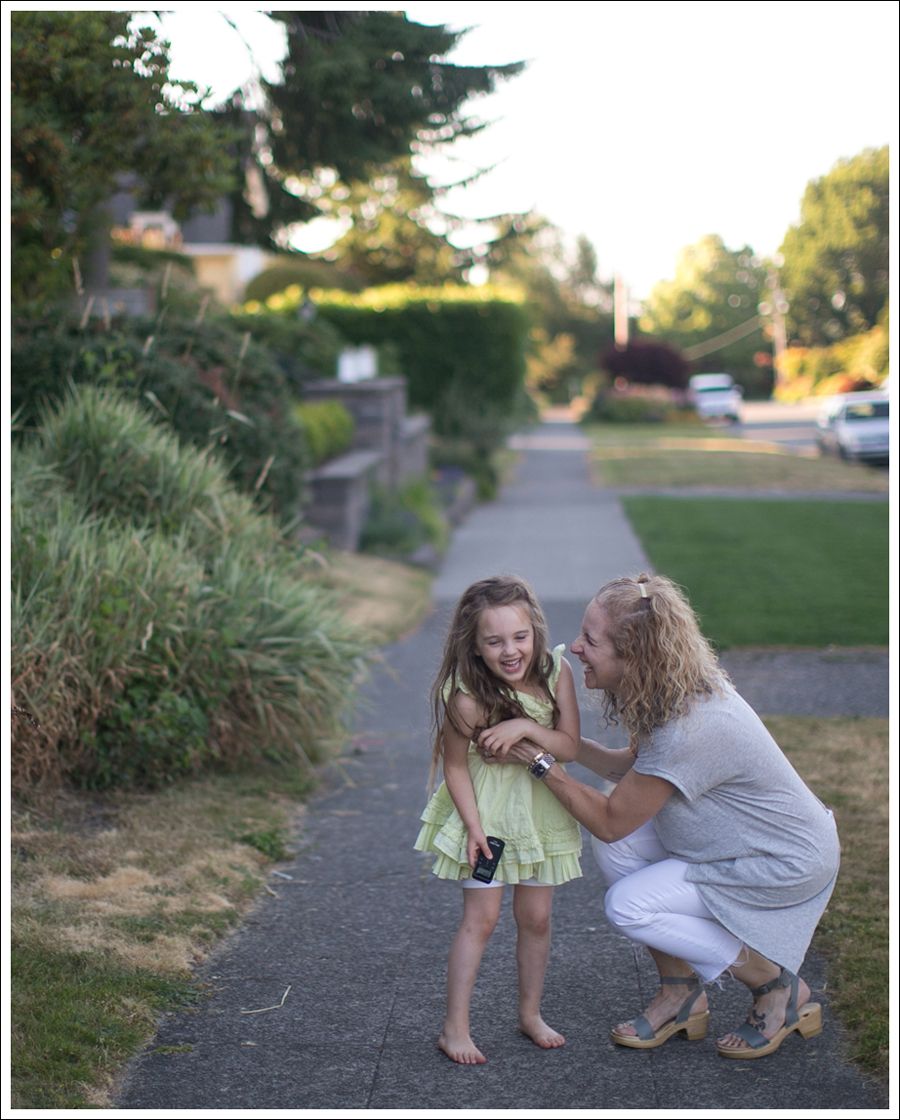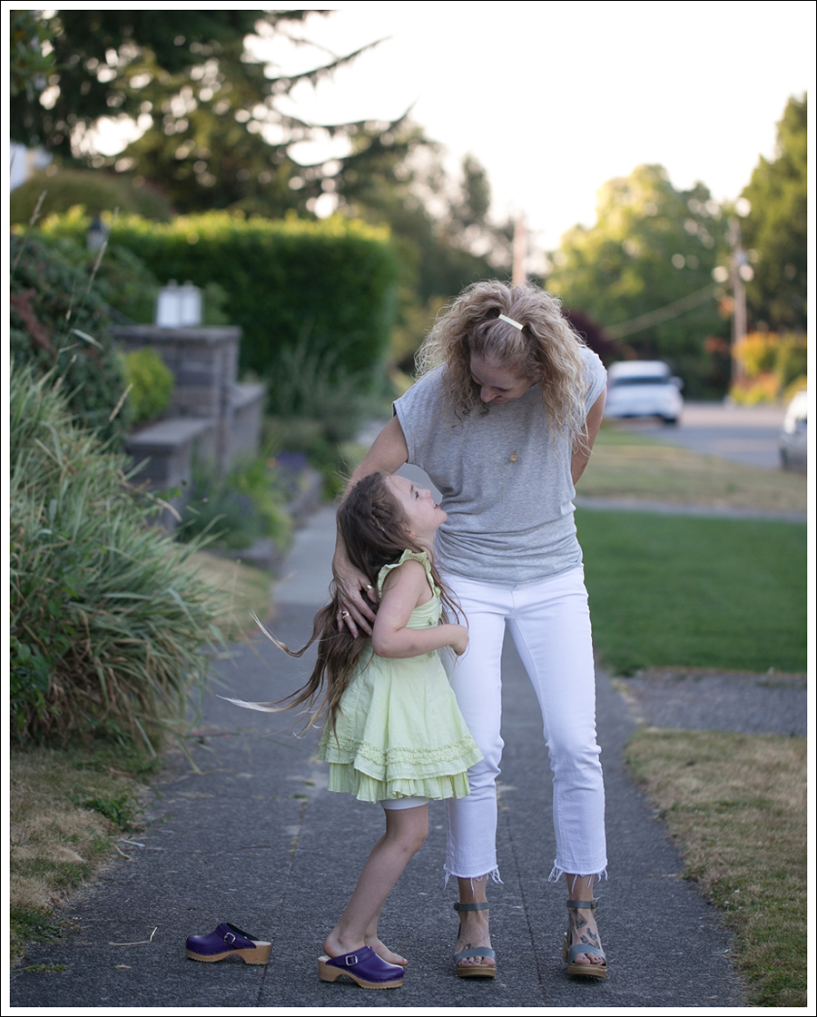 Maya was like “OH!  We almost made a circle!!” when she saw this. 🙂 Seriously, so cute with the tied back right??!! I can’t even…I LOVE capturing the way we look at each other!! My dad goes for a walk in the evening, and we see him when we are out playing after dinner.