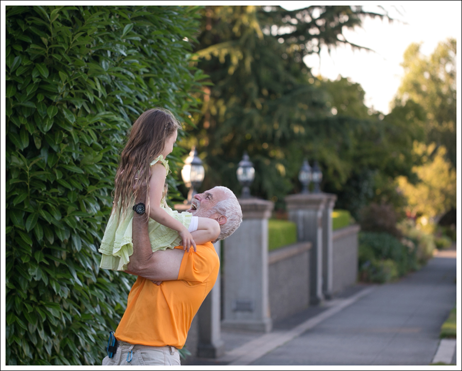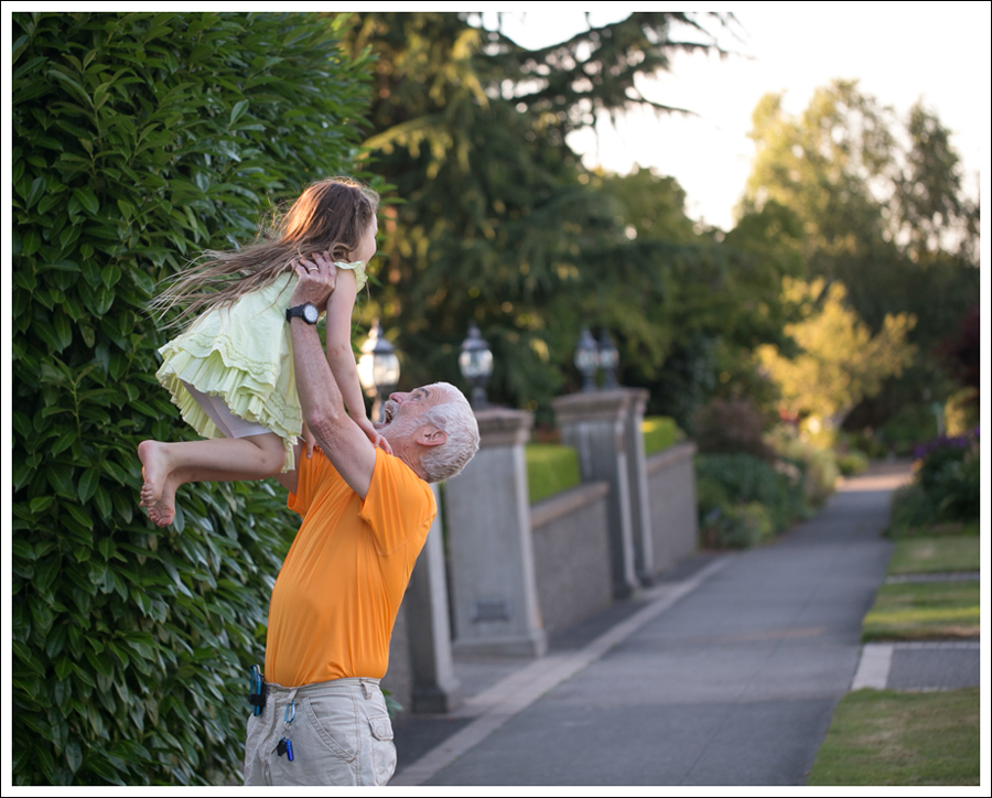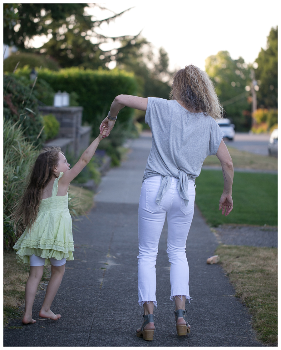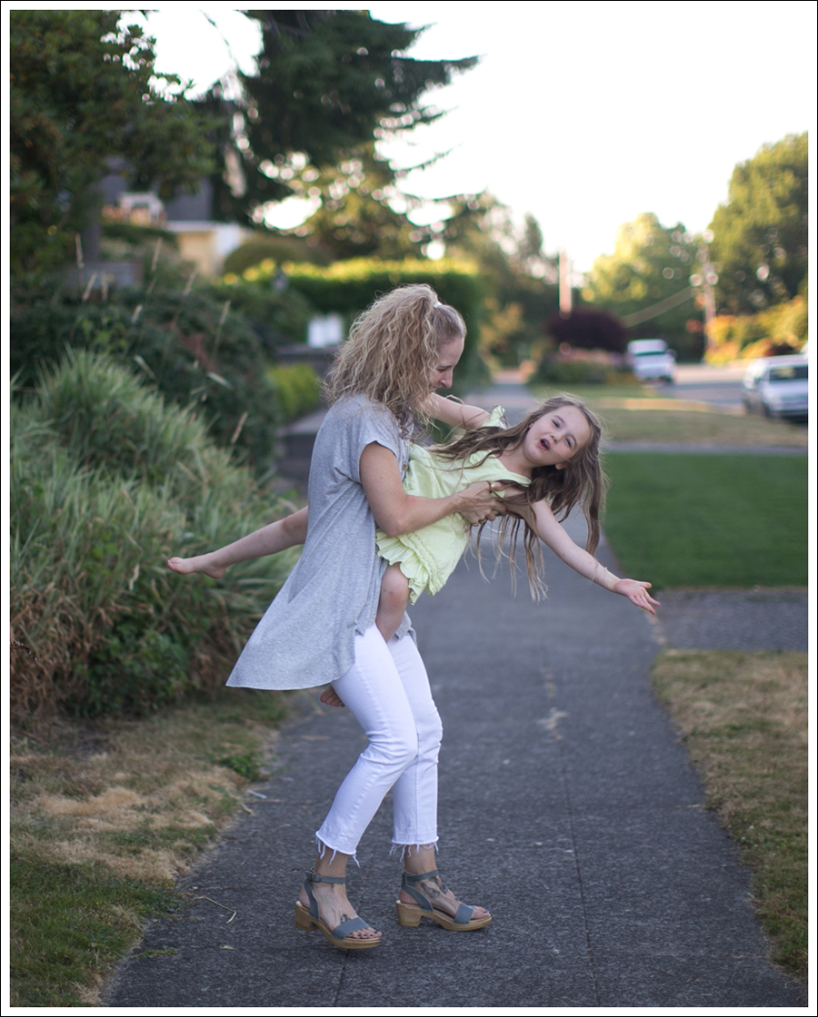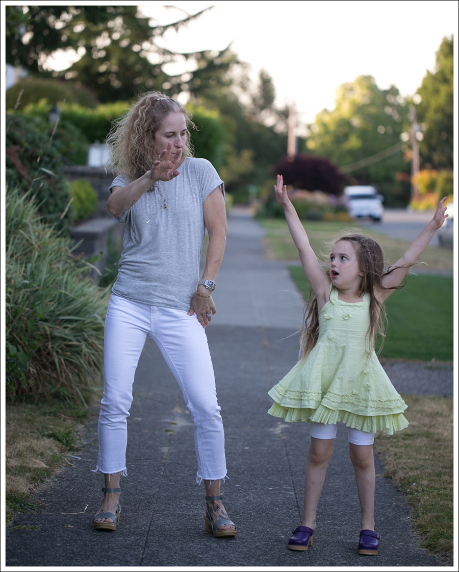 Maya was like “OH!  We almost made a circle!!” when she saw this. 🙂 Seriously, so cute with the tied back right??!! I can’t even…I LOVE capturing the way we look at each other!! My dad goes for a walk in the evening, and we see him when we are out playing after dinner.