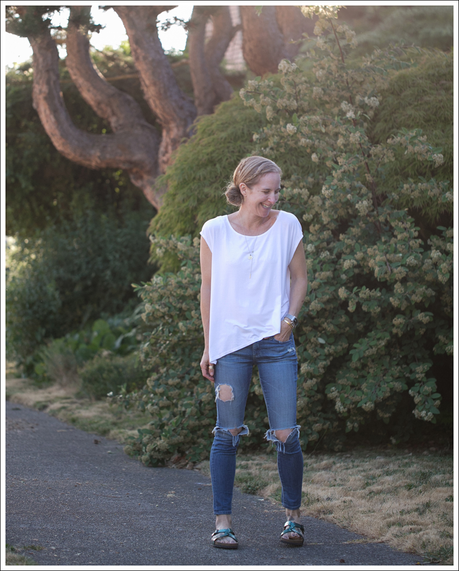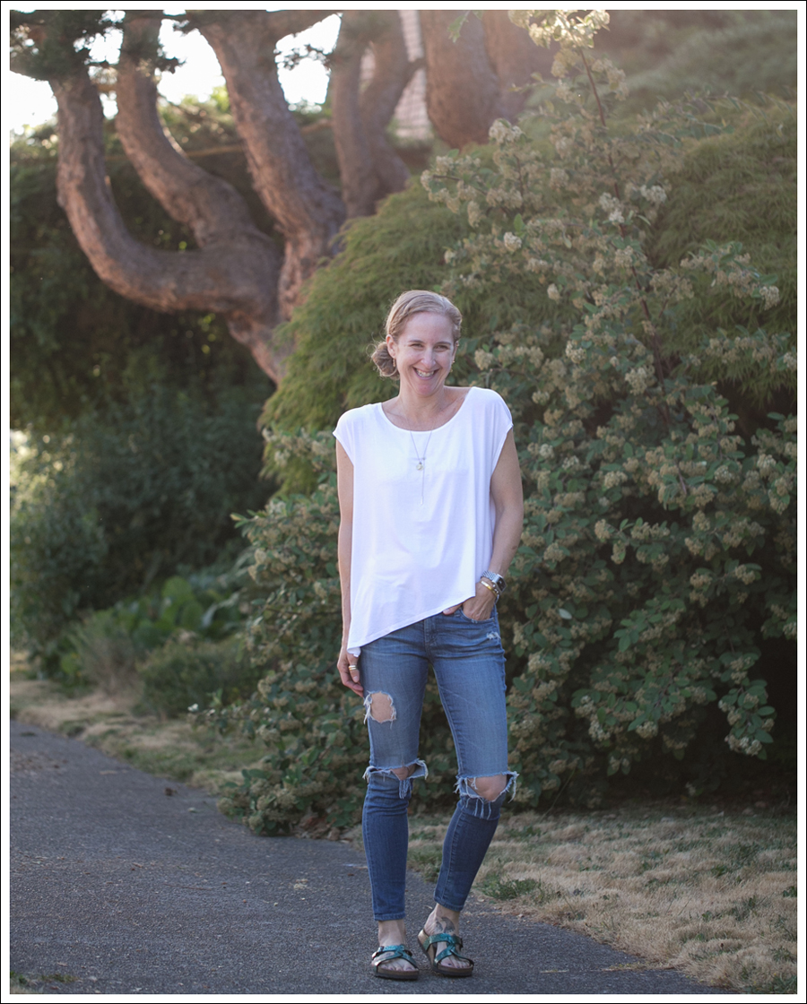 I’m a total sucker for an interesting twist on a plain t, and this asymmetrical hem totally hooked me!