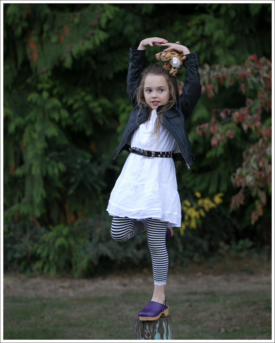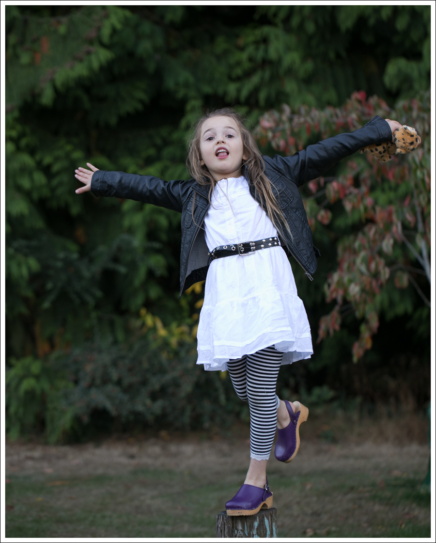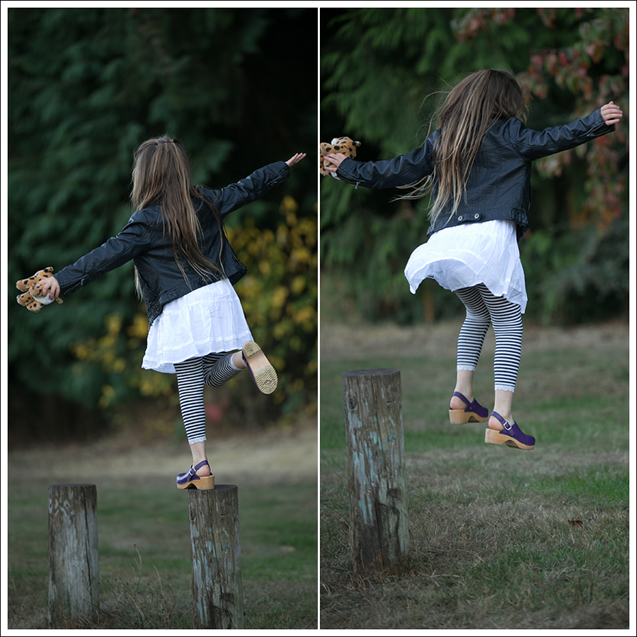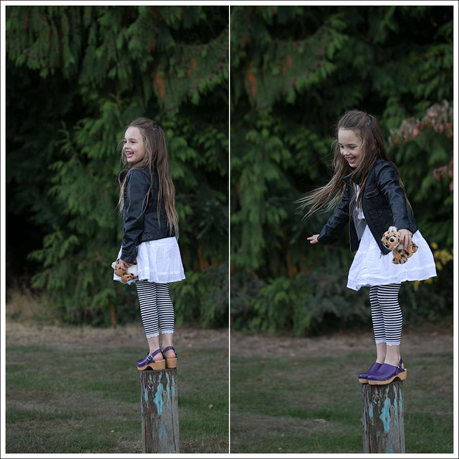 Haha. Her face! But honestly, I’m so impressed with her balance! In clogs, no less!!