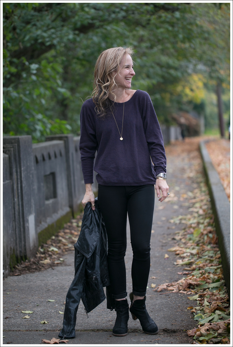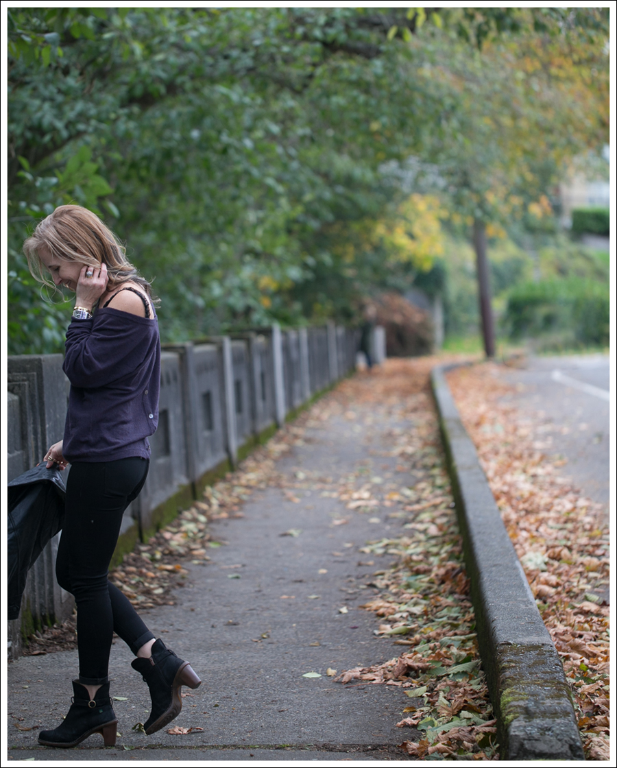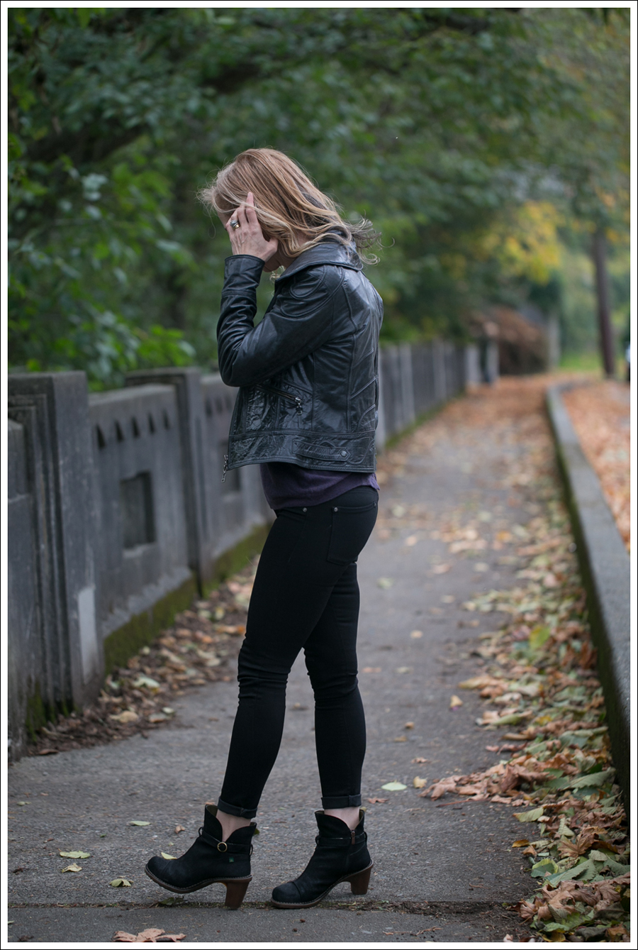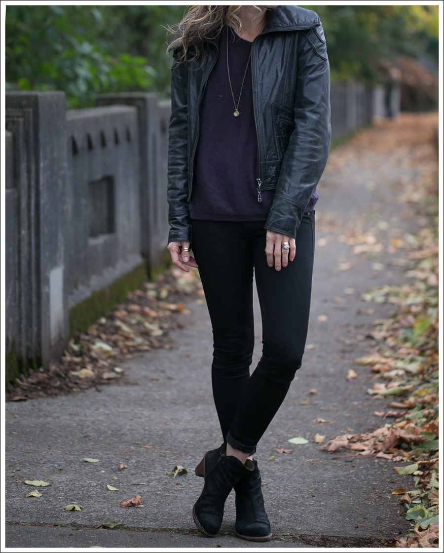 On Monday I posted a “day version” of this outfit that simply swapped out the heeled booties for lower heel combat boots.
