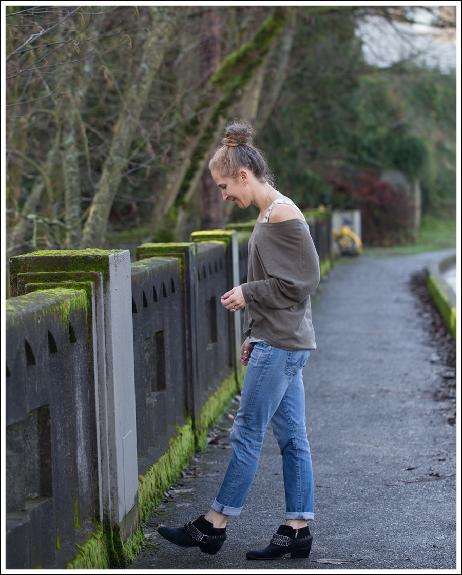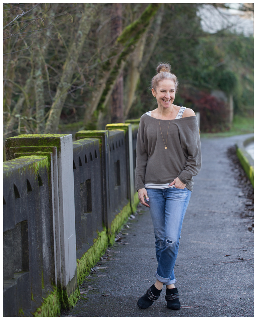 I love the idea that any wide neck sweater can easily turn into an off the shoulder one!
